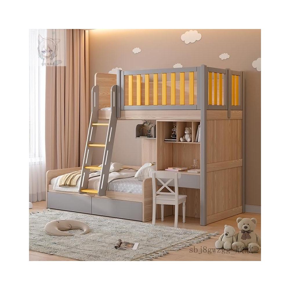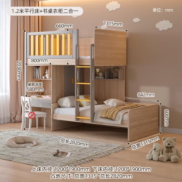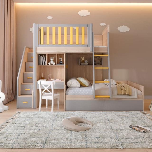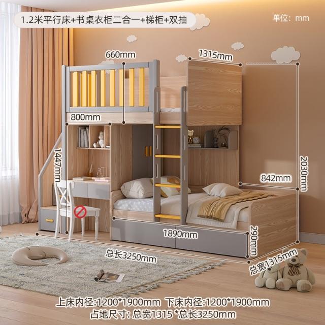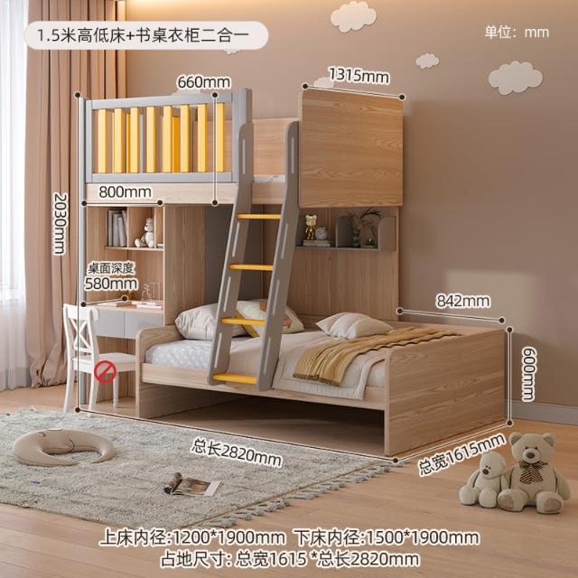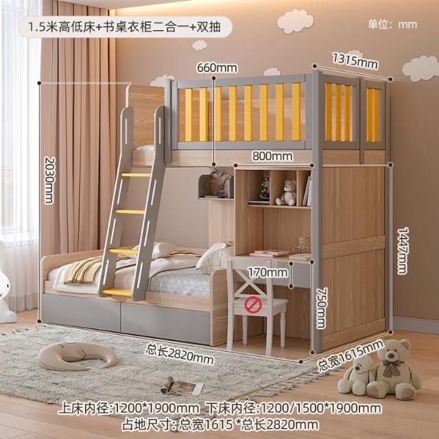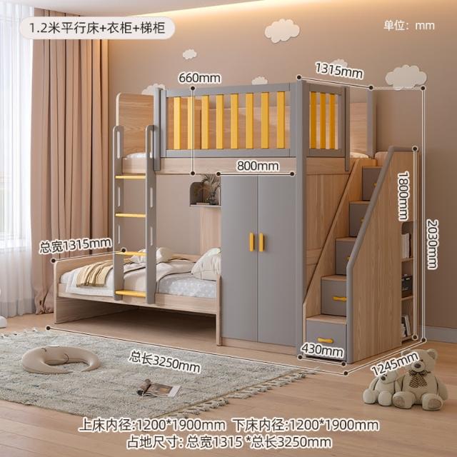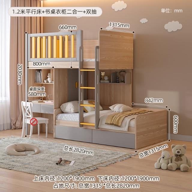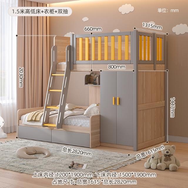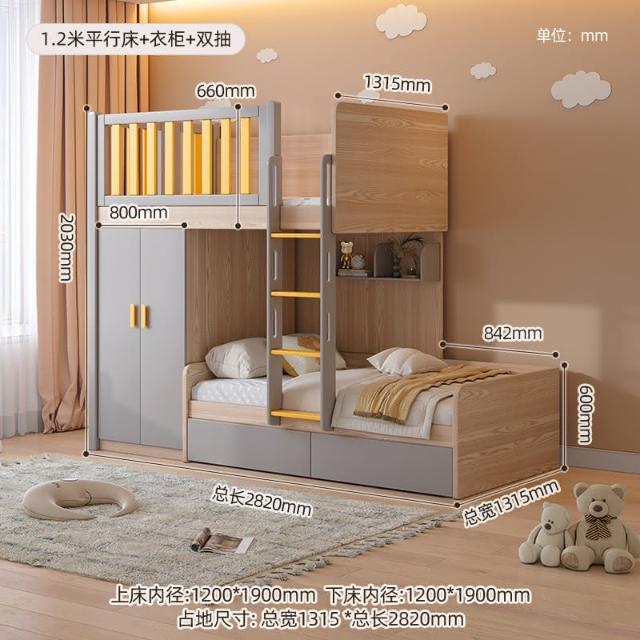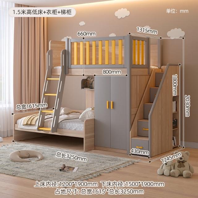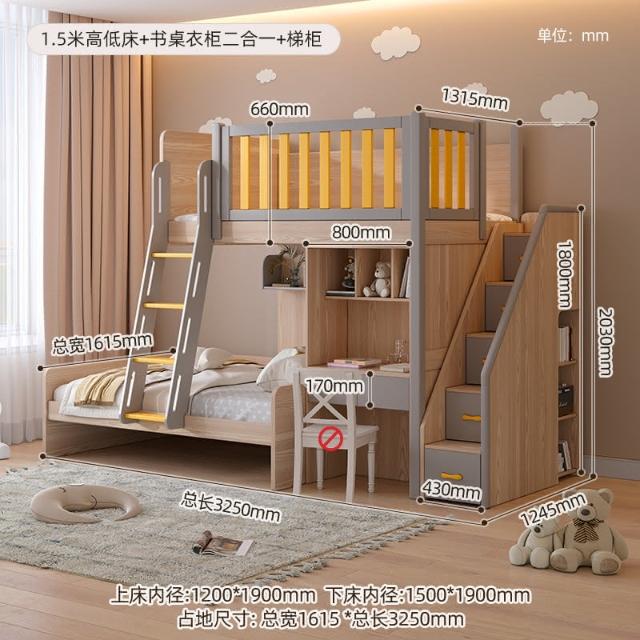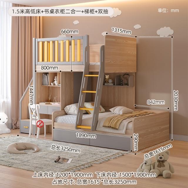 可上門安裝 交錯式上下床兒童床書桌一體小戶型高低子母床帶衣櫃錯位型雙層床