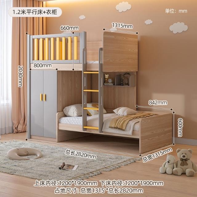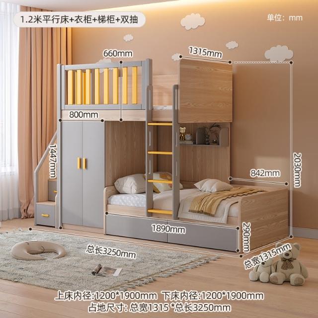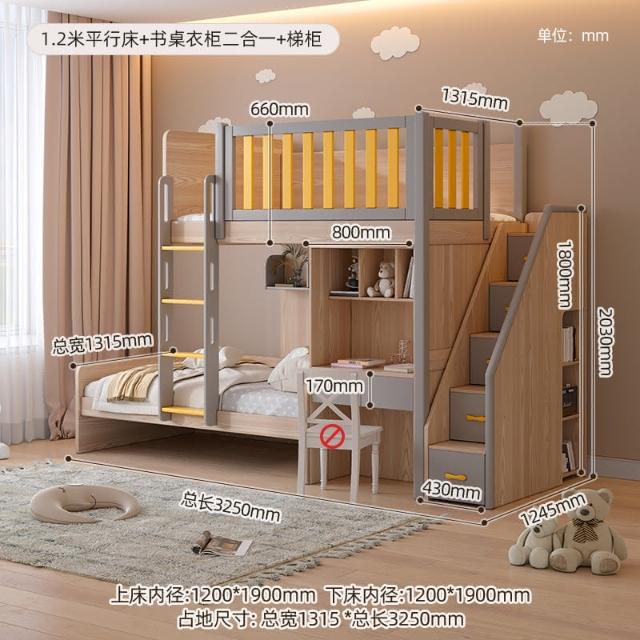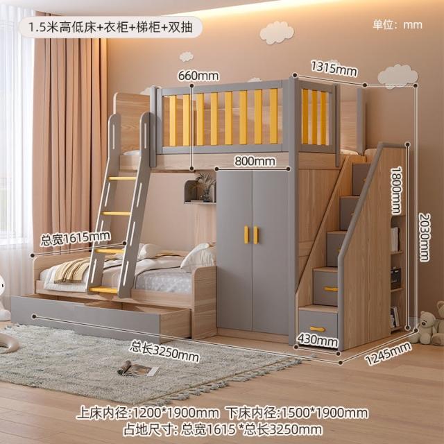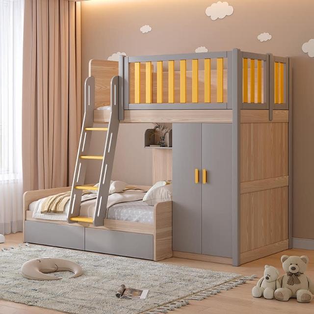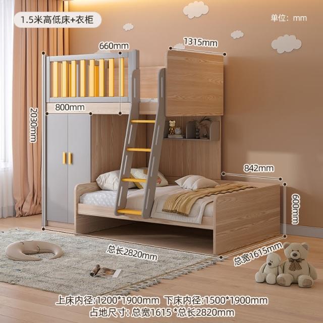 可上門安裝 交錯式上下床兒童床書桌一體小戶型高低子母床帶衣櫃錯位型雙層床