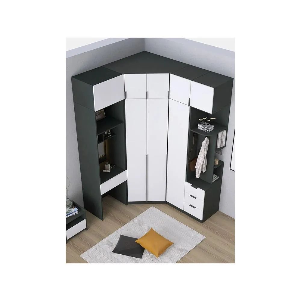 可開發票 轉角衣櫃書桌一體組閤床頭臥室梳妝臺定製90度l型鑽石拐角衣帽間
