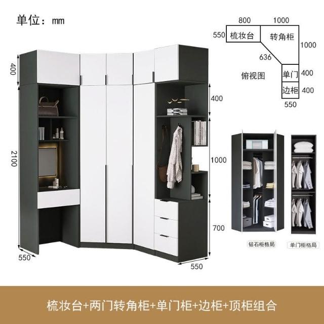 可開發票 轉角衣櫃書桌一體組閤床頭臥室梳妝臺定製90度l型鑽石拐角衣帽間