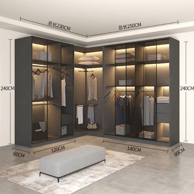 可開發票 北歐L型組閤裝轉角衣櫃實木現代簡約收納櫃傢用臥室90度拐角衣櫥
