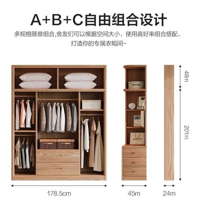 可上門安裝 北歐白蠟木實木衣櫃臥室移門原木風推拉門簡約大容量衣櫥實木衣櫃