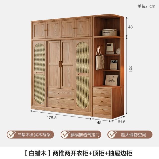 可上門安裝 北歐白蠟木實木衣櫃臥室移門原木風推拉門簡約大容量衣櫥實木衣櫃