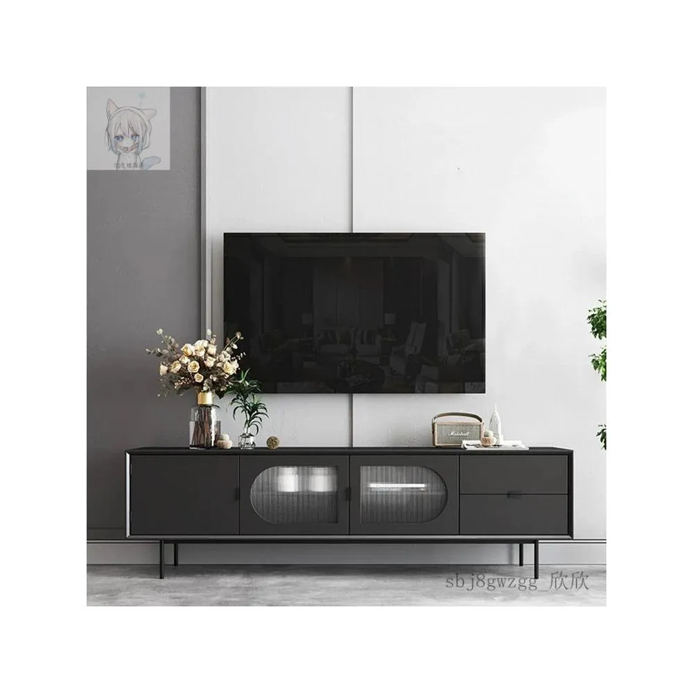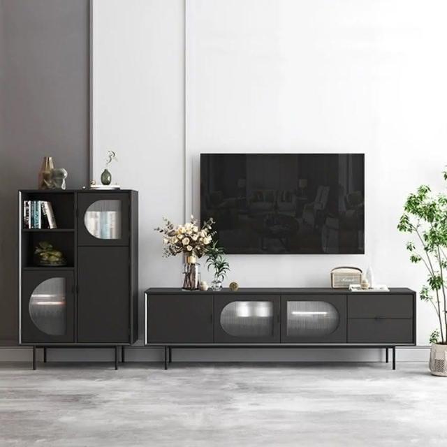 工廠直髮 北歐黑色電視櫃現代簡約小戶型複古長虹玻璃輕奢電視機櫃儲物邊櫃