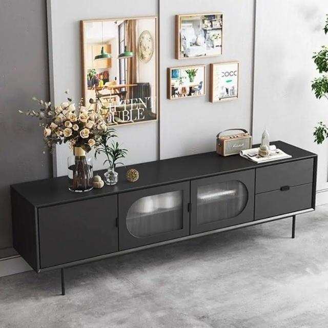工廠直髮 北歐黑色電視櫃現代簡約小戶型複古長虹玻璃輕奢電視機櫃儲物邊櫃