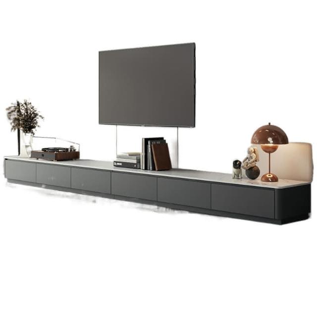 工廠直髮 T弧形落地電視櫃輕奢高級感實木巖闆地臺小戶型地櫃客廳家用電視