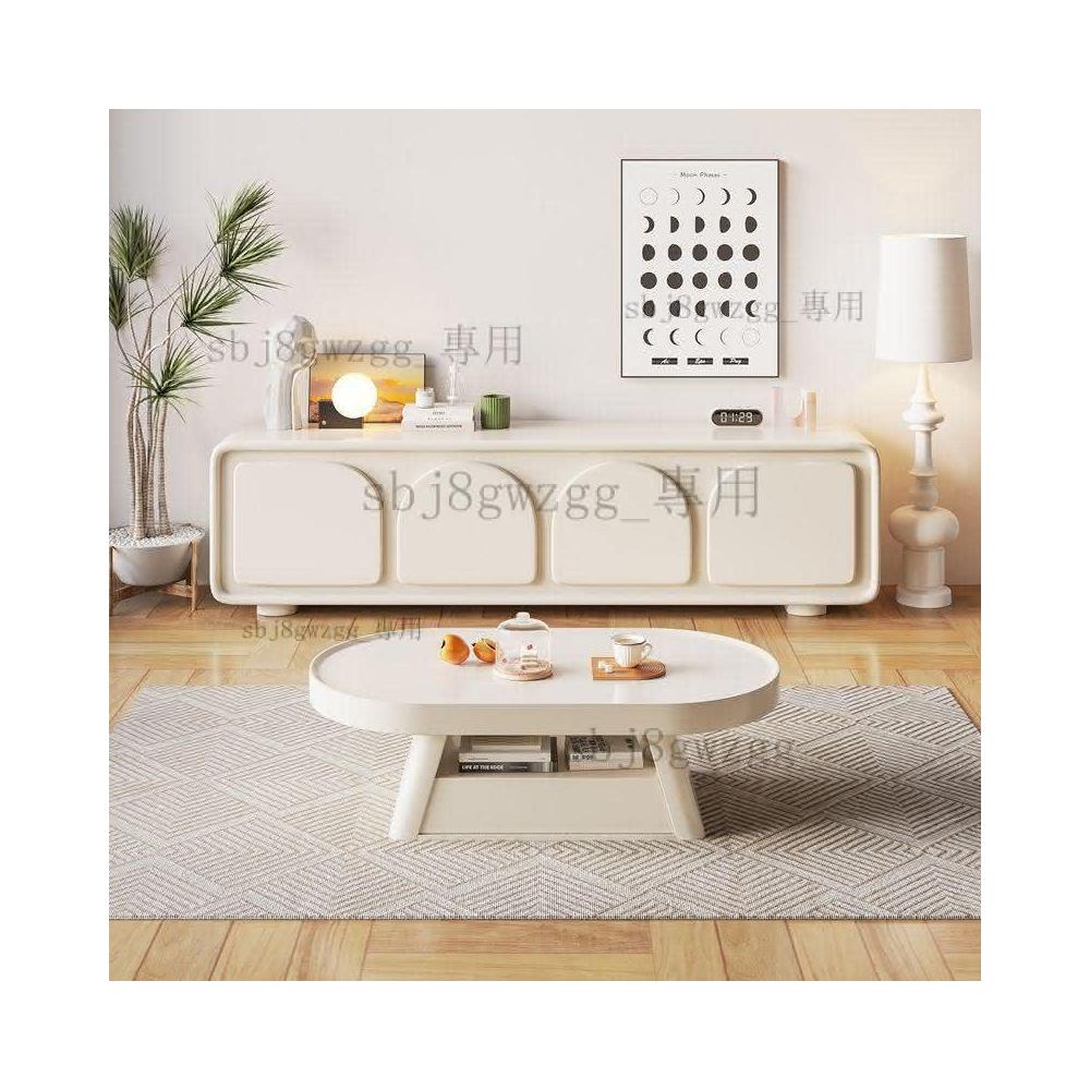 工廠直發 免運 奶油風電視櫃茶幾現代客廳簡約網紅輕奢白色法式米色傢用一體地櫃
