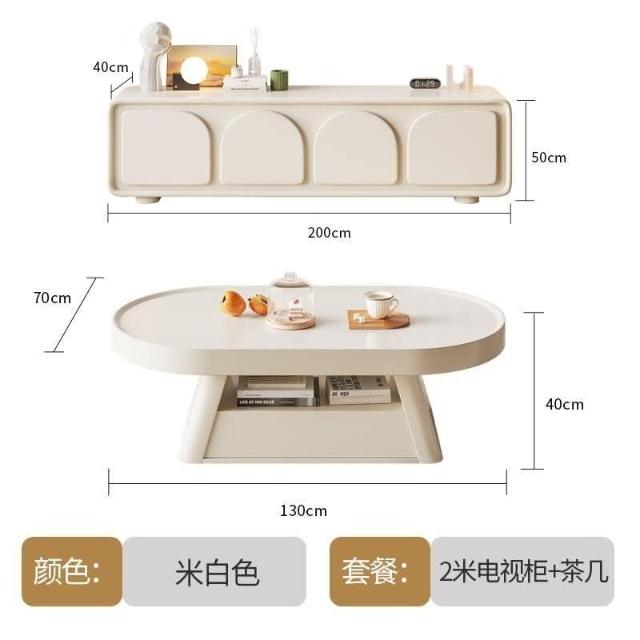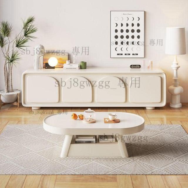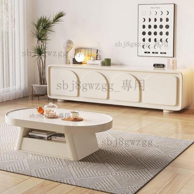 工廠直發 免運 奶油風電視櫃茶幾現代客廳簡約網紅輕奢白色法式米色傢用一體地櫃