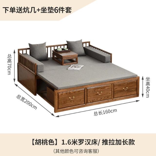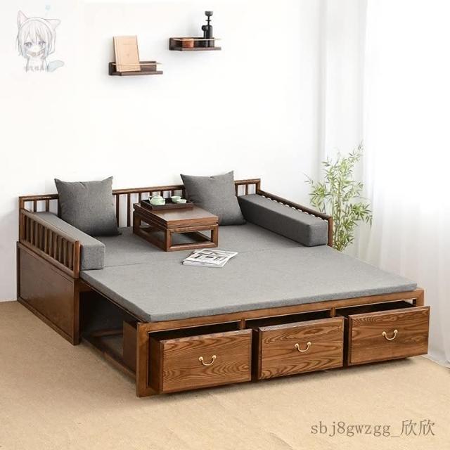 工廠直髮 羅漢床實木新中式推拉床客廳沙髮伸縮床白蠟木現代簡約小戶型床榻