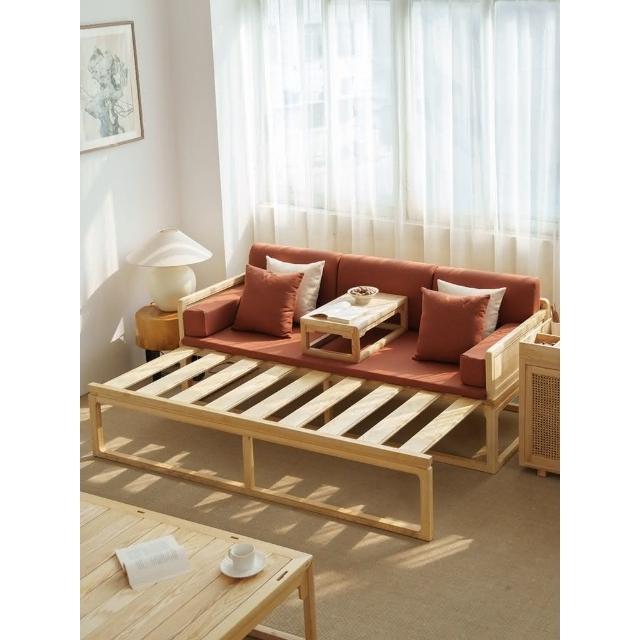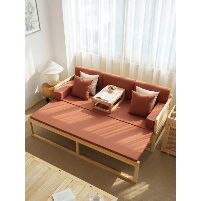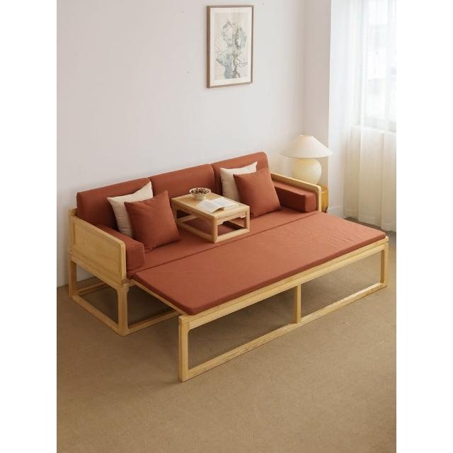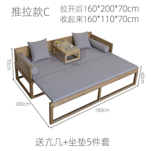 工廠直髮 新中式圍闆推拉床羅漢床實木侘寂風伸縮沙髮床古典白蠟木禪意臥榻