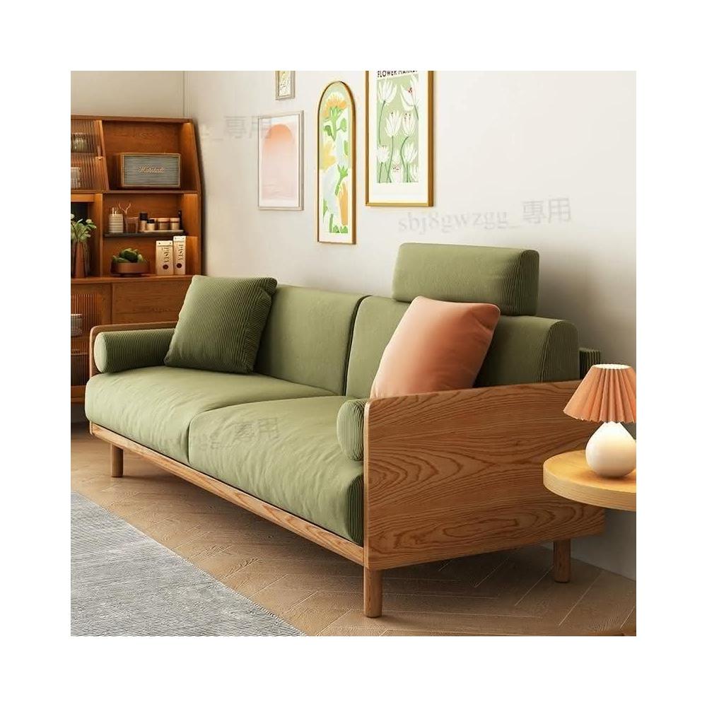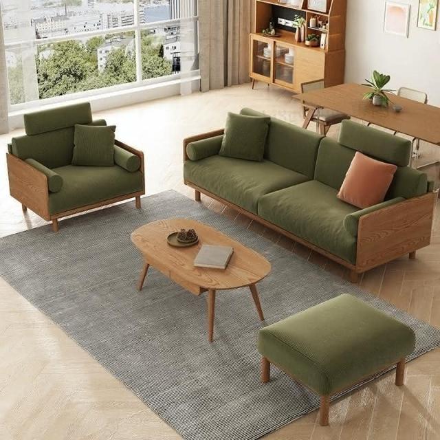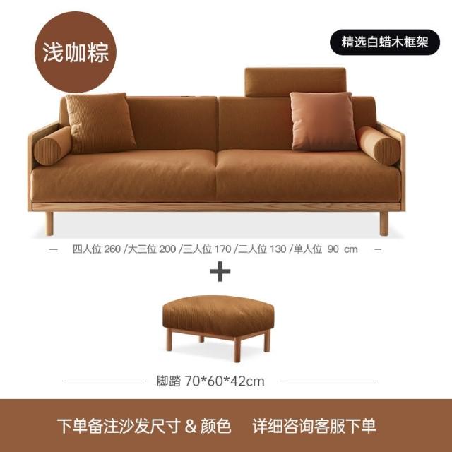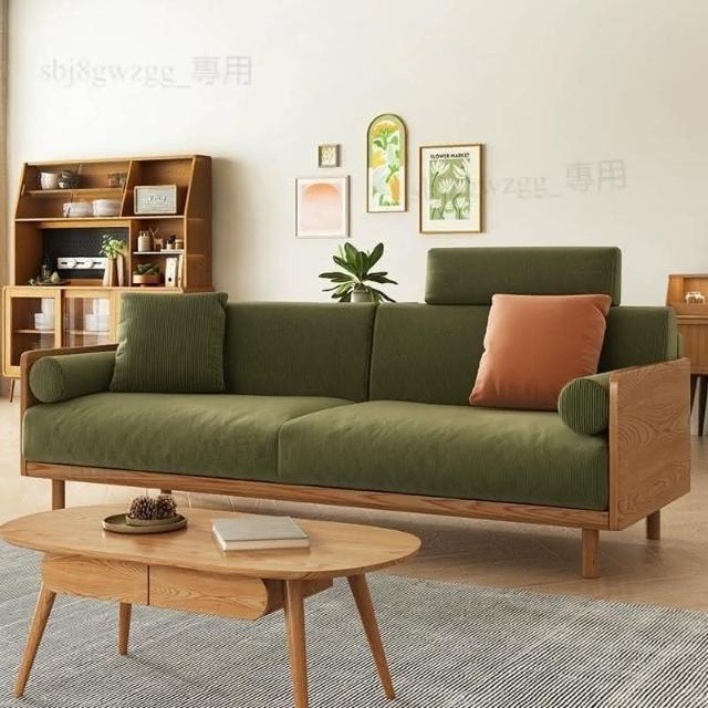 可開發票 日式復古燈芯絨布藝沙發白蠟木小戶型可拆洗客廳二三人整裝組合