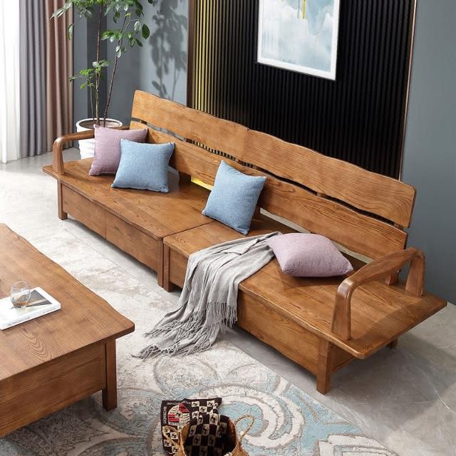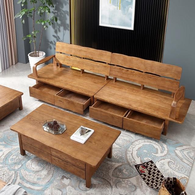 可開發票 北歐新中式白蠟木實木沙發冬夏兩用儲物沙發日式原木大板抽屜沙發