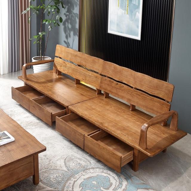 可開發票 北歐新中式白蠟木實木沙發冬夏兩用儲物沙發日式原木大板抽屜沙發