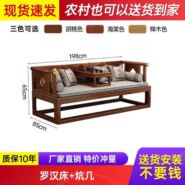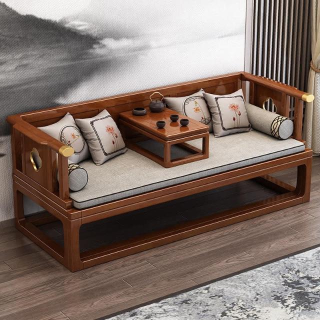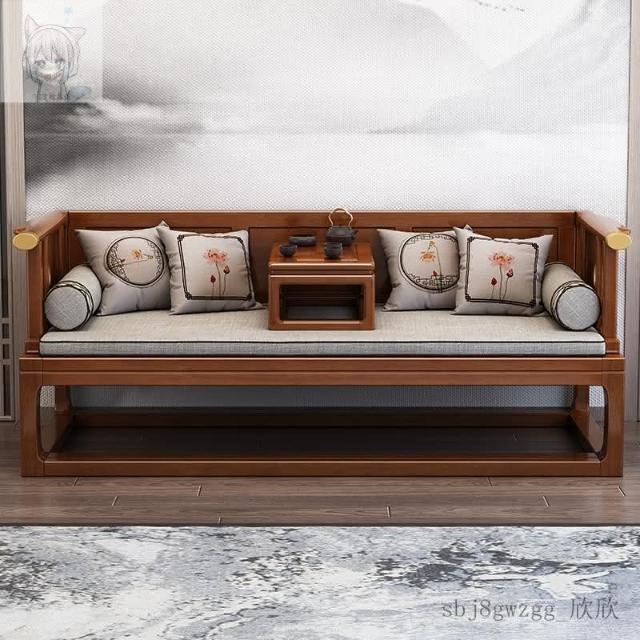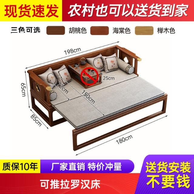 工廠直髮 新中式實木羅漢床推拉床伸縮禪意客廳沙髮小戶型現代簡約床榻組閤