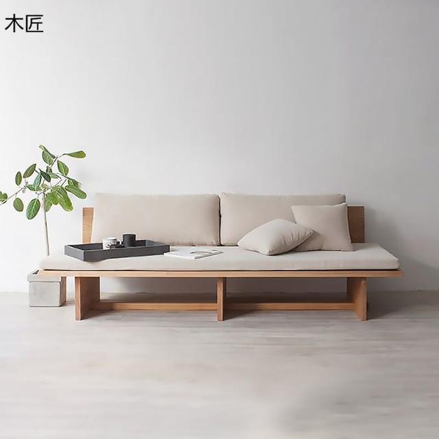 可開發票 日式榻榻米詫寂風白蠟木小戶型客廳布藝簡約長沙發北歐原實木沙發
