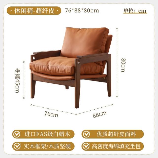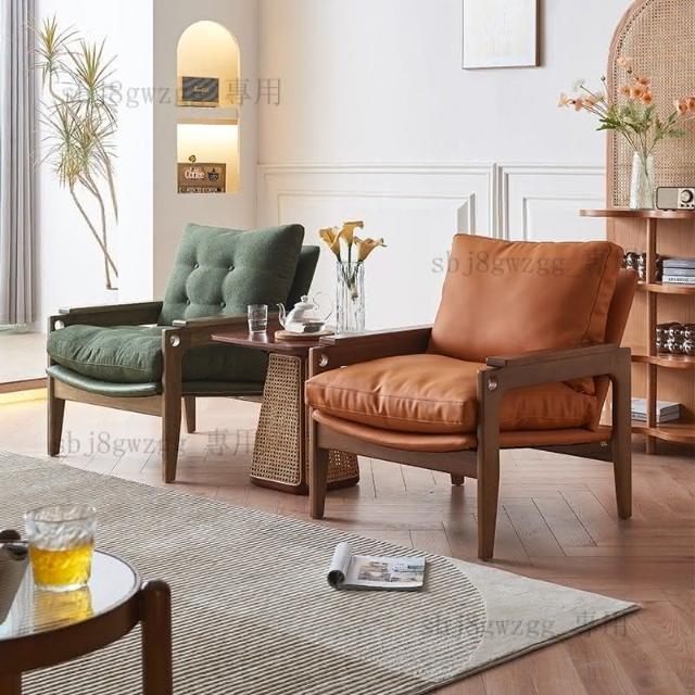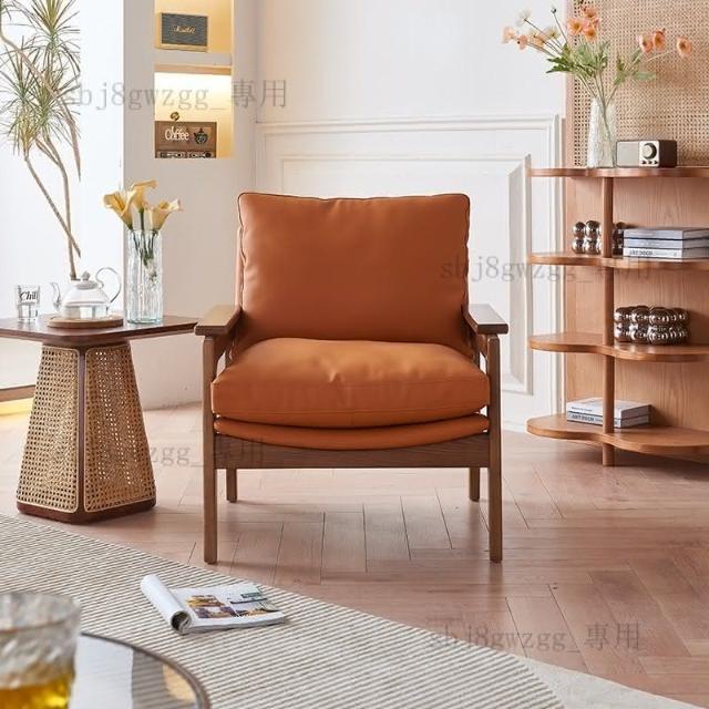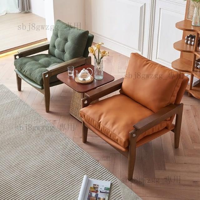 北歐單人沙發 懶人沙發 沙發 沙發椅 懶人椅 歐式沙髮北歐白蠟木實木休閒椅傢用陽臺三件套簡約民宿超縴皮軟包沙髮椅