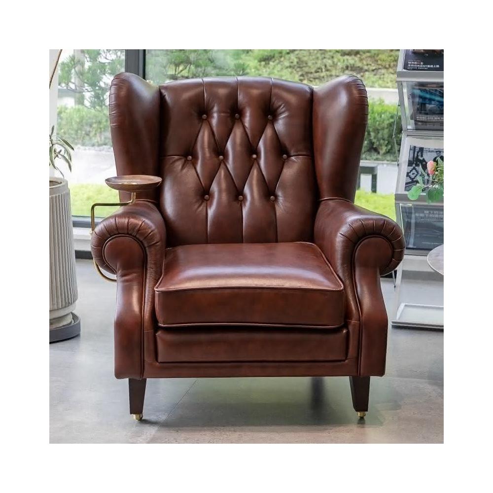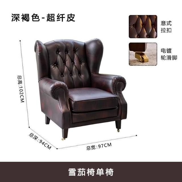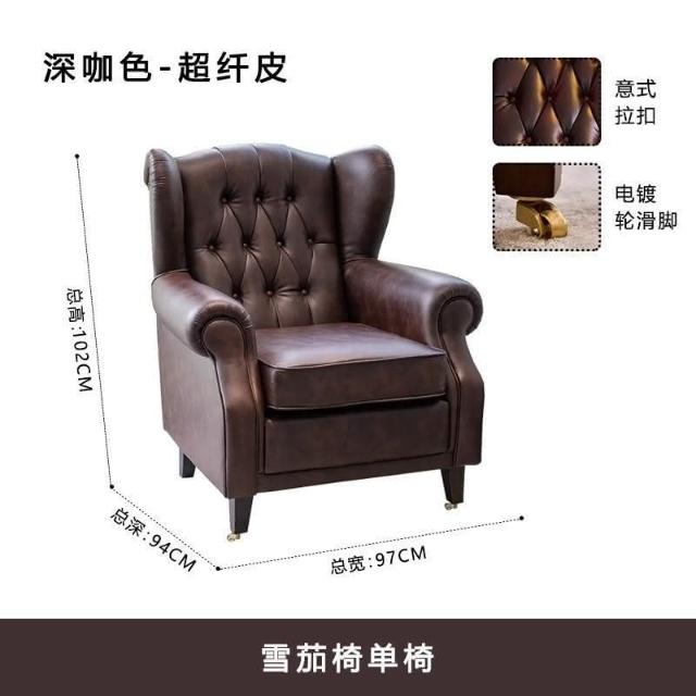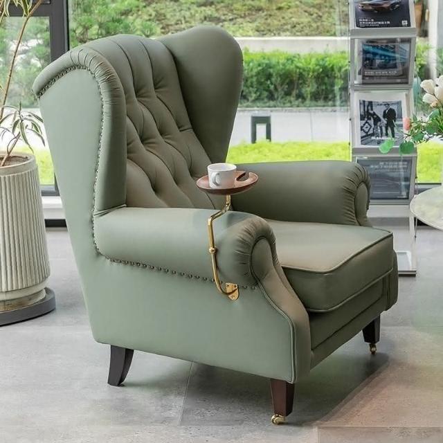 創意 美式輕奢複古網紅椅單人沙髮椅簡約客廳傢用休閒椅書房真皮雪茄椅