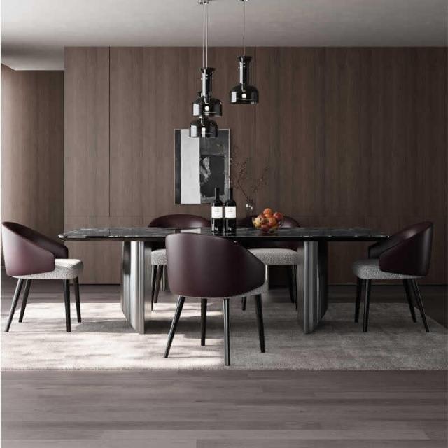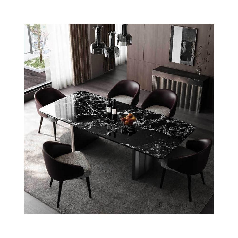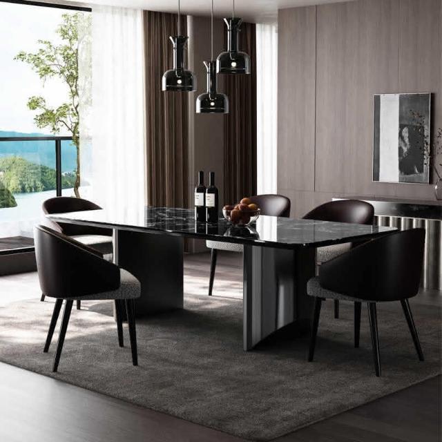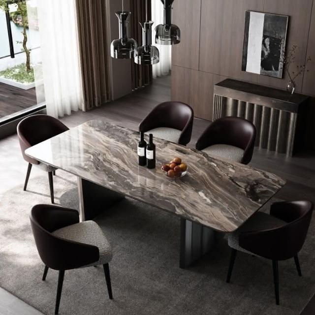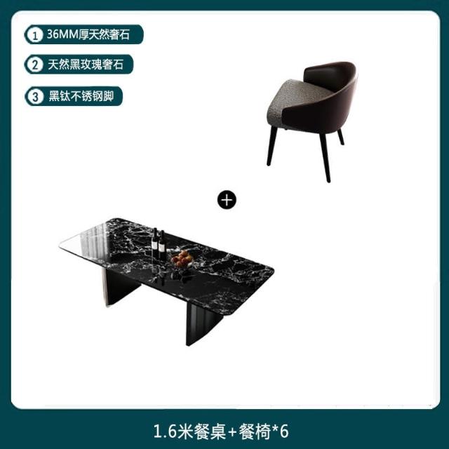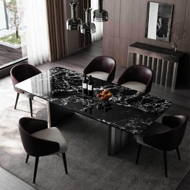 工廠直髮 天然黑玫瑰大理石餐桌家用進口高端別墅設計師奢石進口長方形飯桌