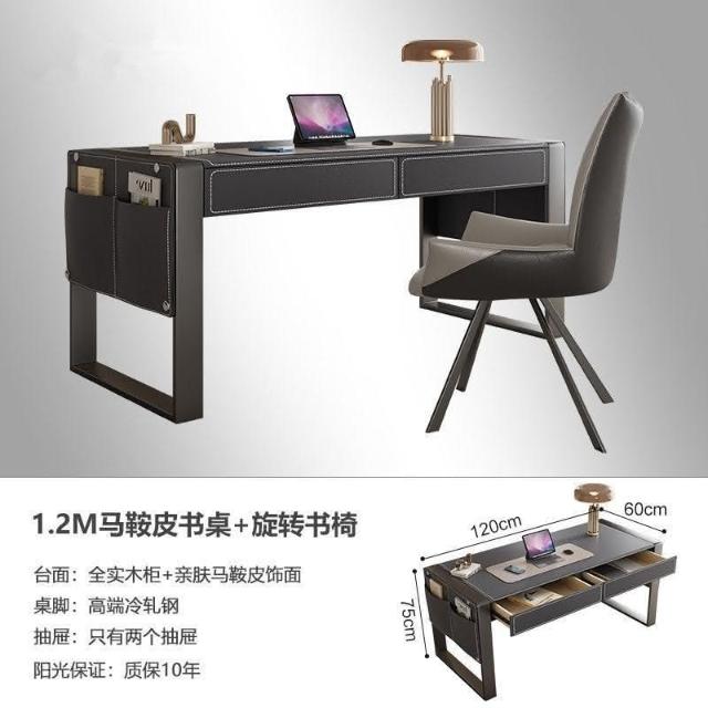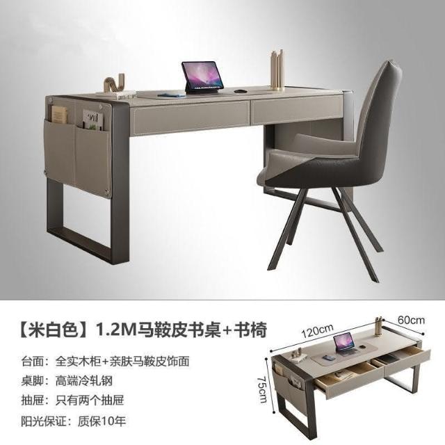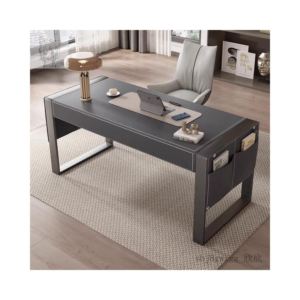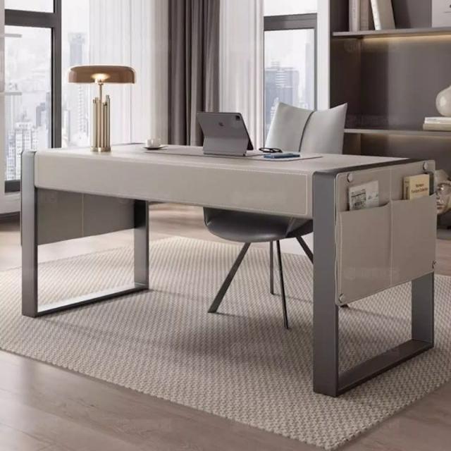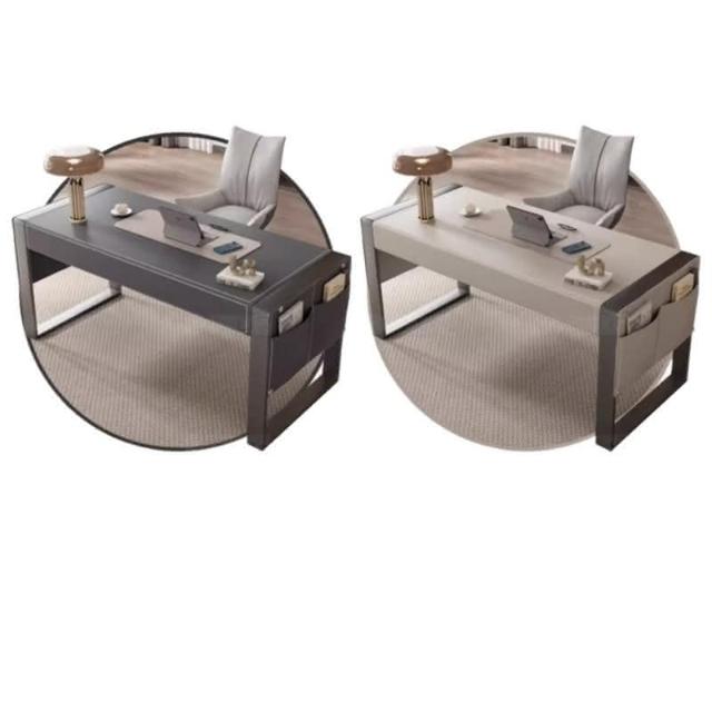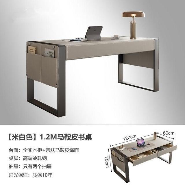 工廠直髮 MHY輕奢馬鞍皮書桌現代簡約家用書房客廳辦公桌設計師高擋電腦桌
