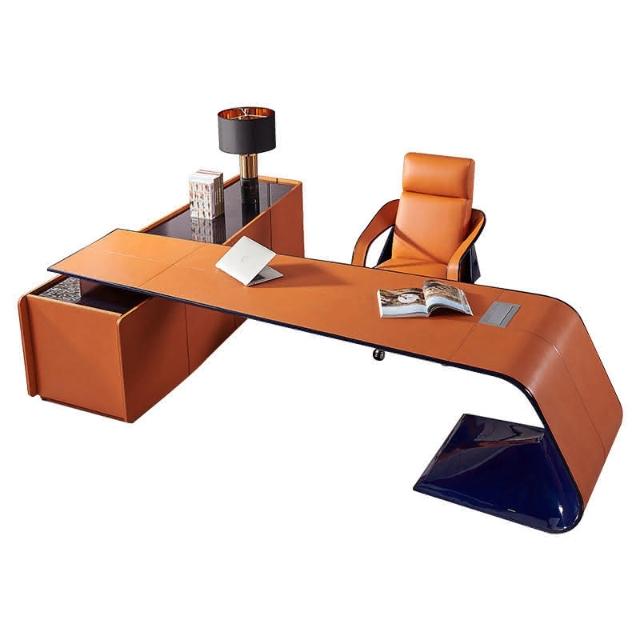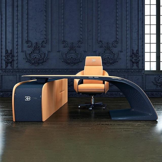 工廠直髮 環歐意大利Bugatti布加迪輕奢書房書桌真皮麵老闆總裁電腦辦公桌