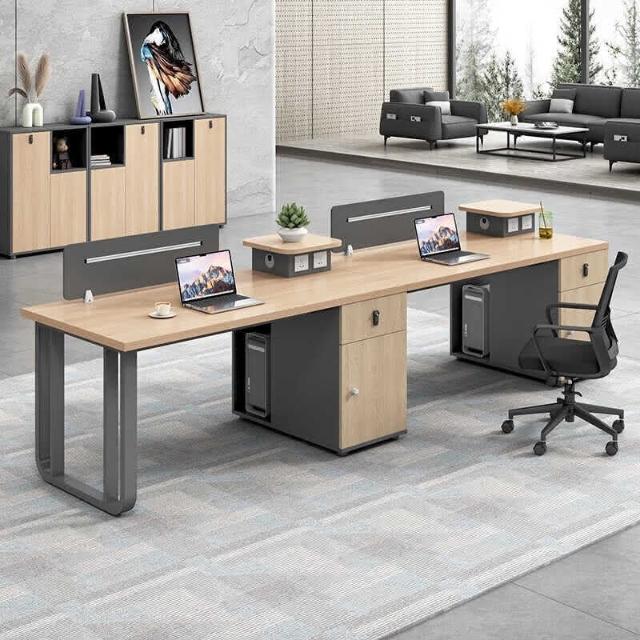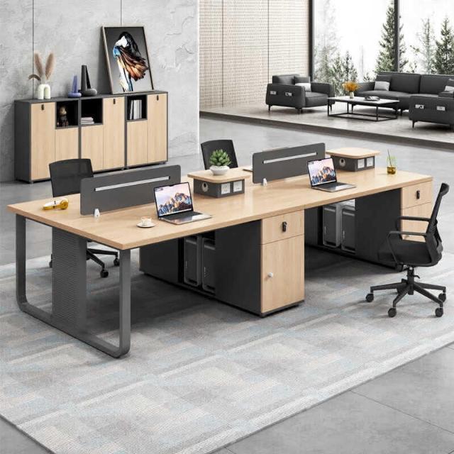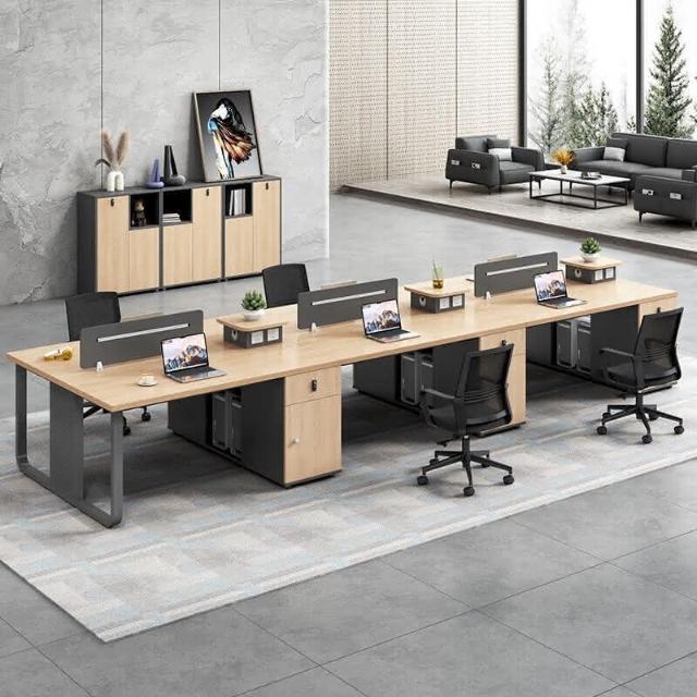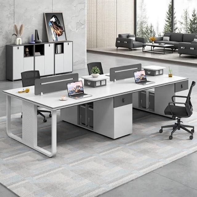 工廠直髮 職員辦公桌椅組閤簡約現代三人位辦公桌子辦公室財務室屏風辦公桌