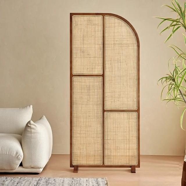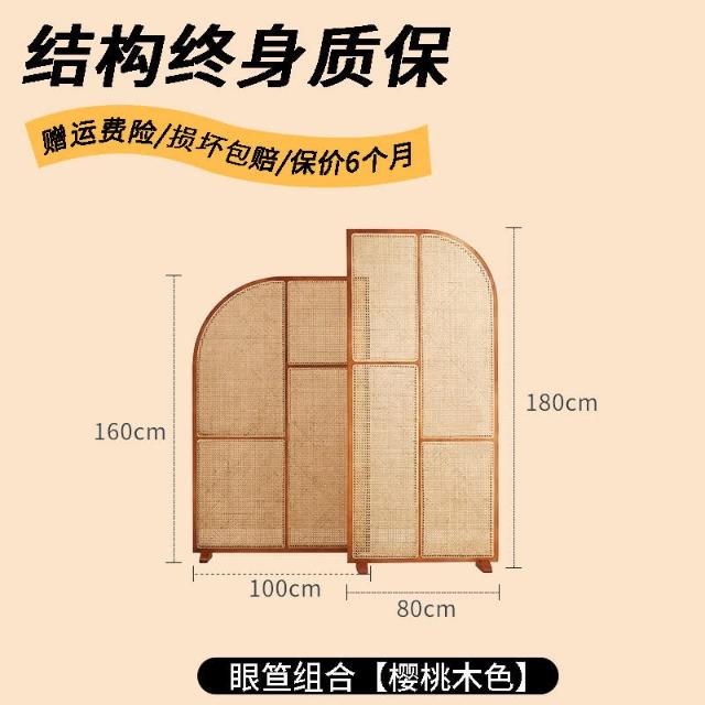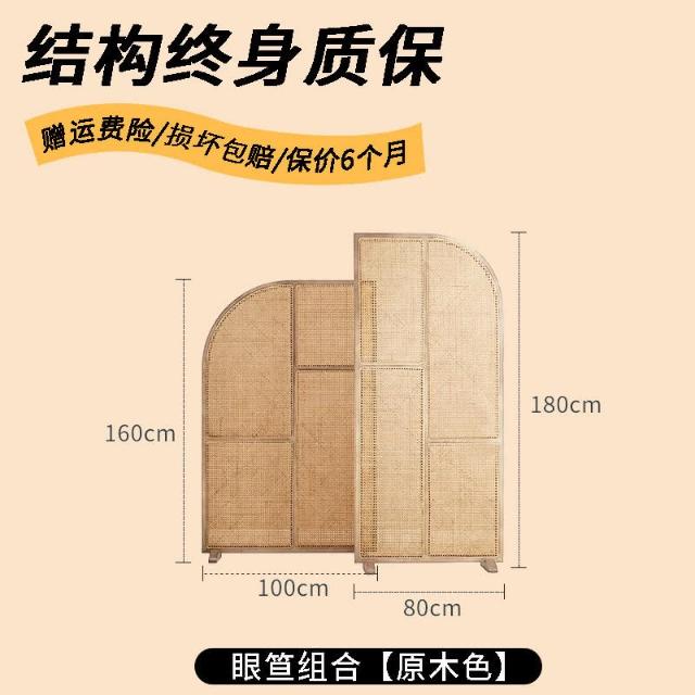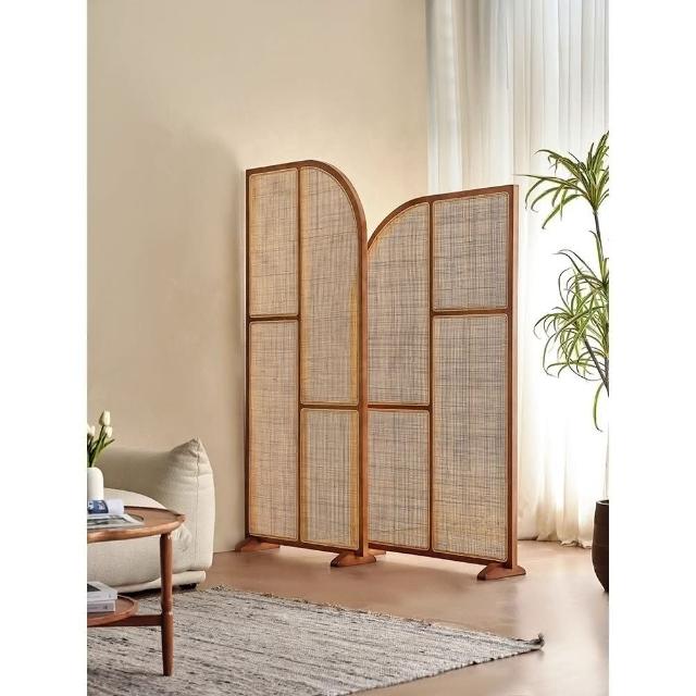 藤編 折屏 隔斷玄 田園草編屏風 屏風隔斷 隔間櫃折疊隔斷日式實木藤編屏風組閤小戶型客廳創意隔斷墻可移動新中式禪意座屏