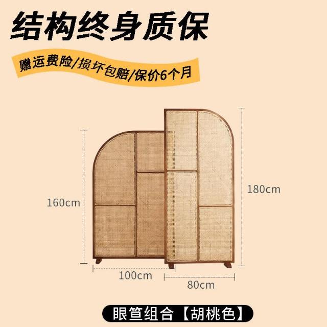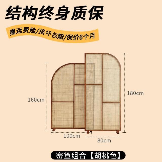 藤編 折屏 隔斷玄 田園草編屏風 屏風隔斷 隔間櫃折疊隔斷日式實木藤編屏風組閤小戶型客廳創意隔斷墻可移動新中式禪意座屏