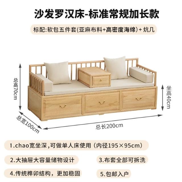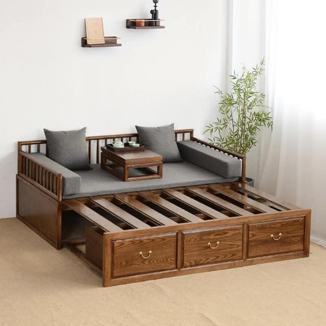 工廠直髮 羅漢床實木新中式推拉床客廳沙髮伸縮床白蠟木現代簡約小戶型床榻