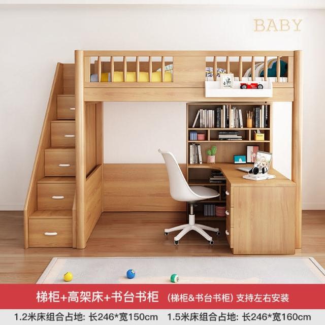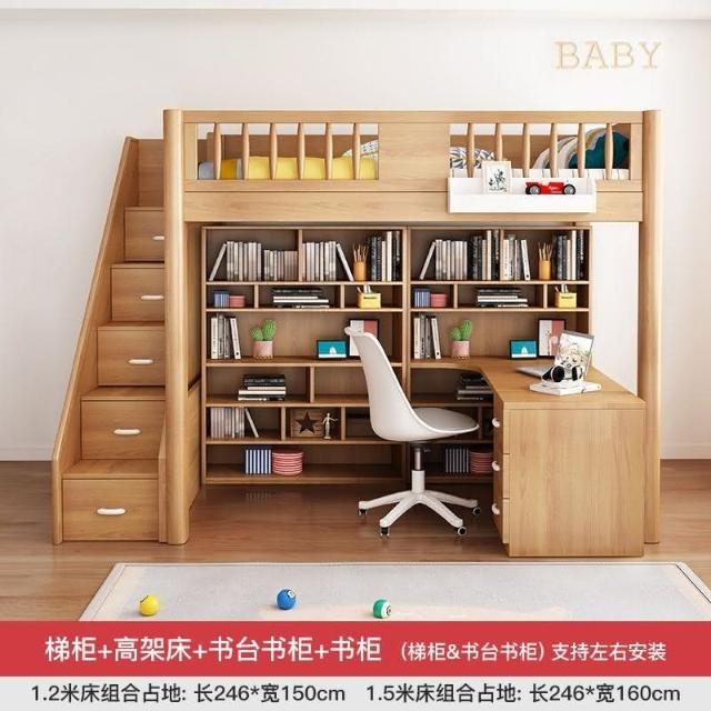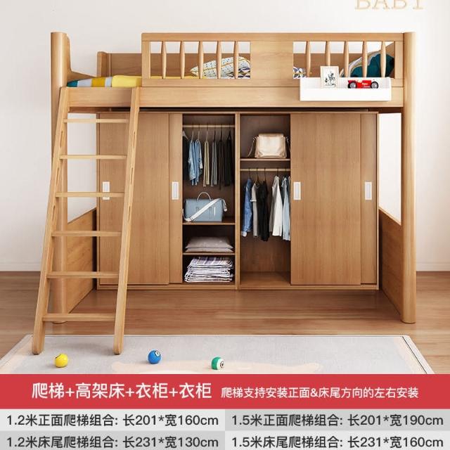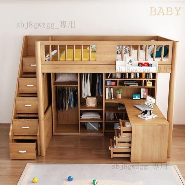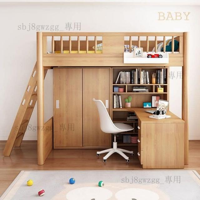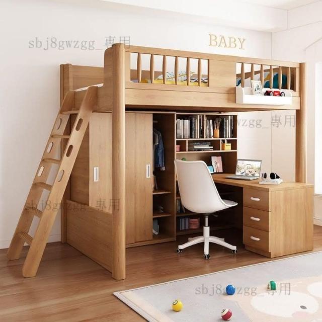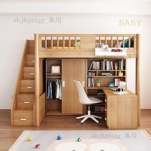 (可到府安裝)上床下桌女孩高低床小戶型二層兒童上下床帶書桌衣櫃實木多功能床