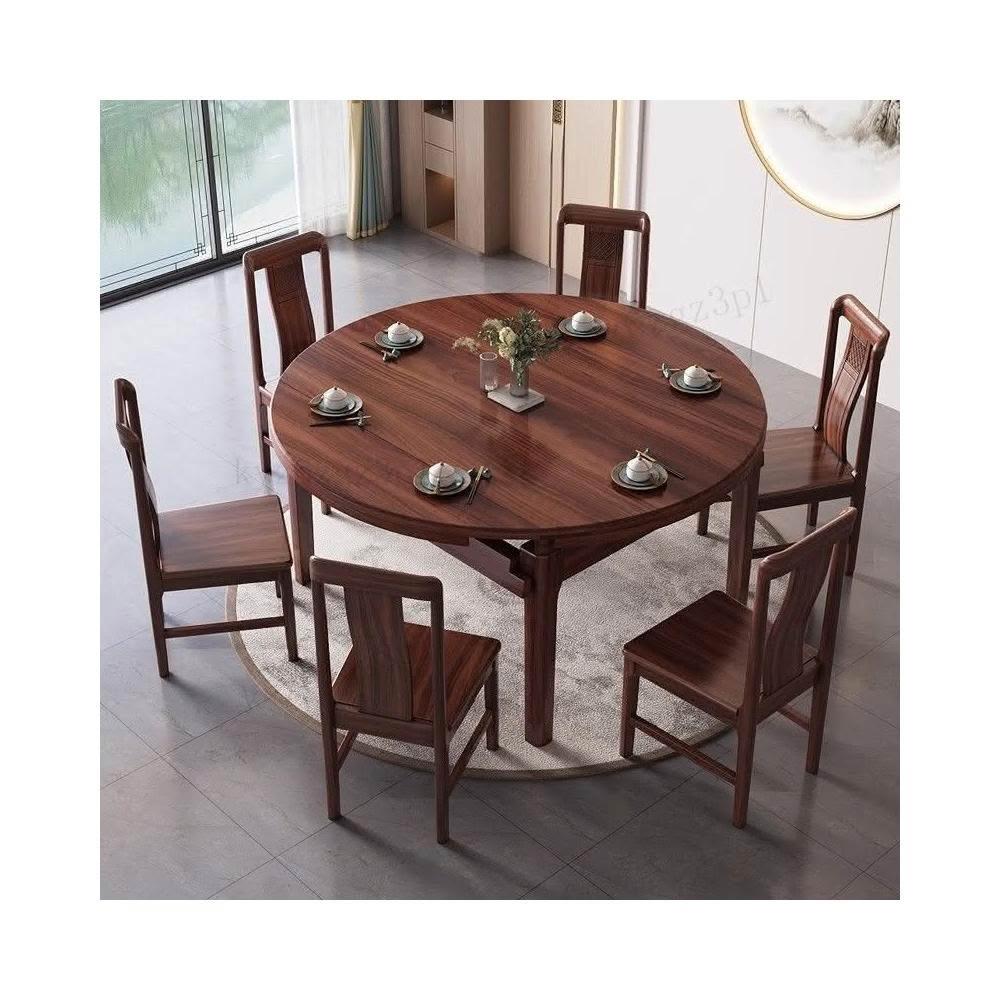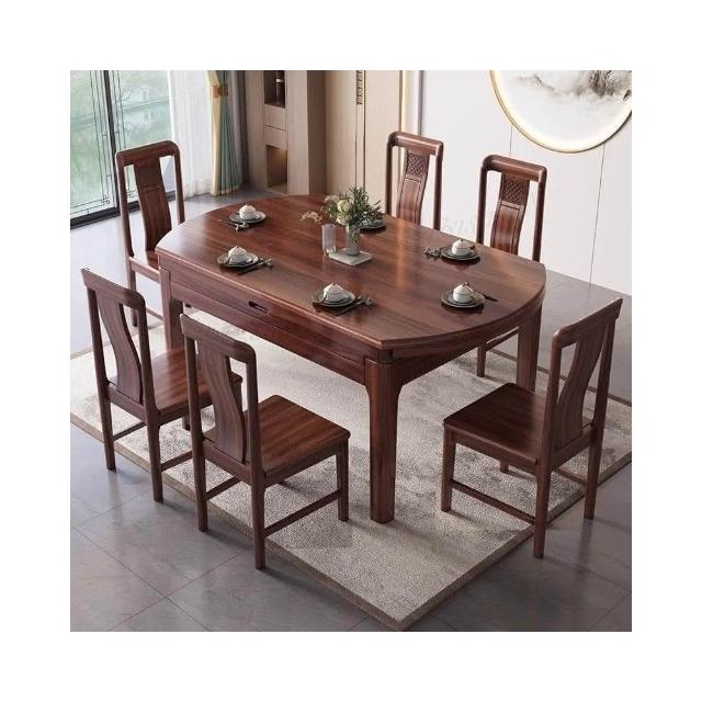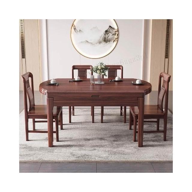 烏金木餐桌新中式實木伸縮折疊橢圓形飯桌方圓兩用桌家用可變圓桌