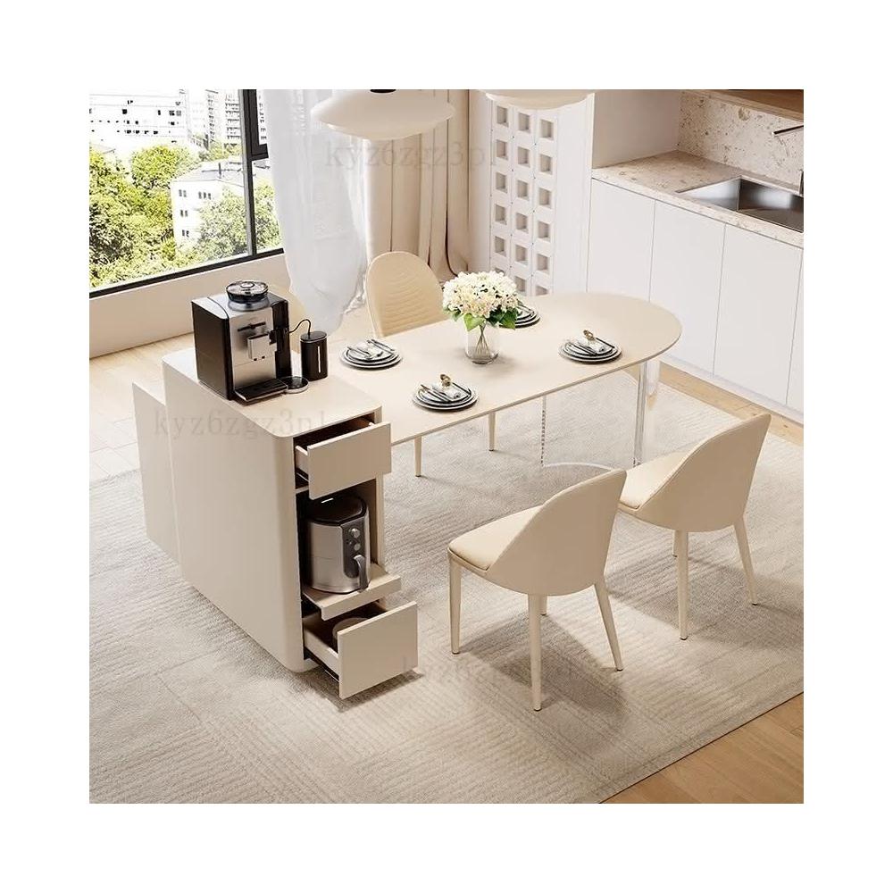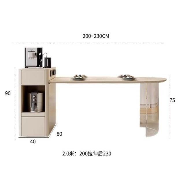 法式奶油風輕奢中島臺餐桌伸縮餐桌一體傢用小戶型半圓吧臺飯桌椅
