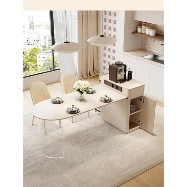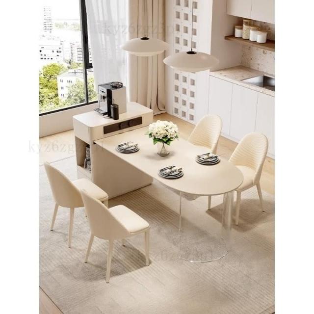 法式奶油風輕奢中島臺餐桌伸縮餐桌一體傢用小戶型半圓吧臺飯桌椅