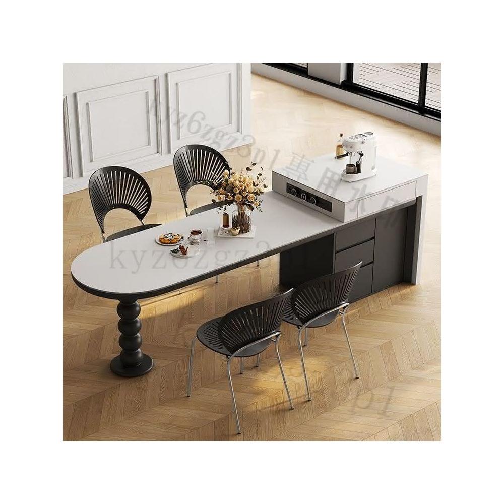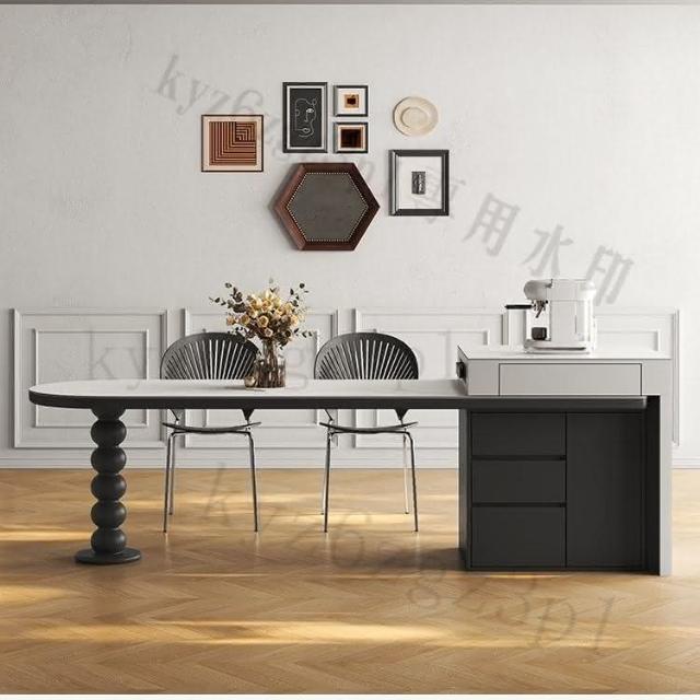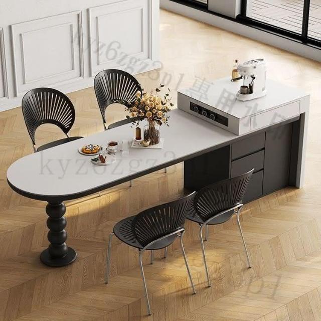 法式複古可伸縮島臺餐桌一體多功能傢用小戶型圓弧島臺巖闆餐桌椅