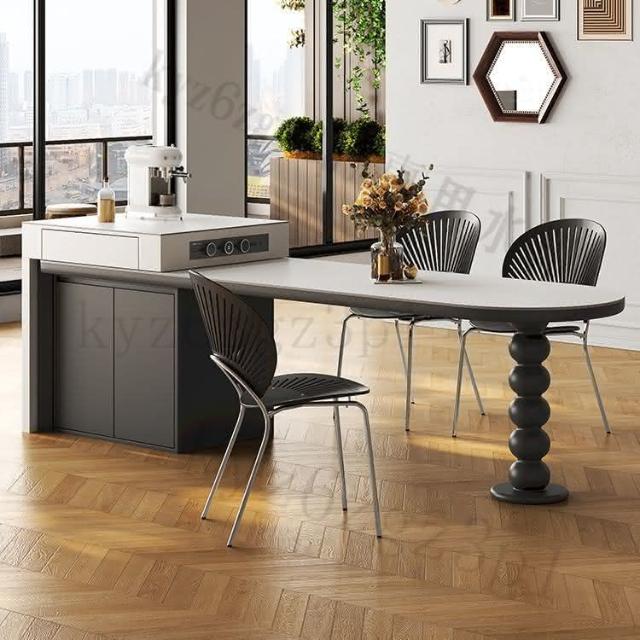 法式複古可伸縮島臺餐桌一體多功能傢用小戶型圓弧島臺巖闆餐桌椅