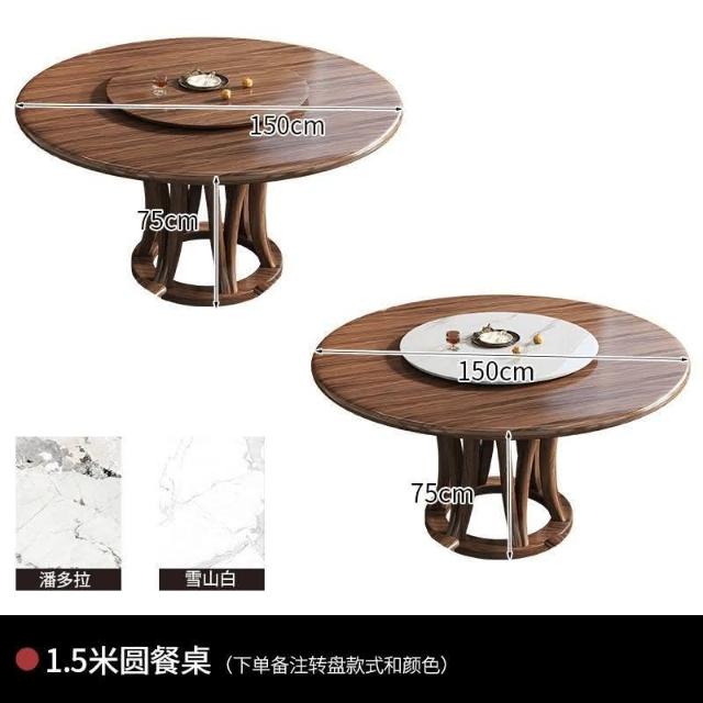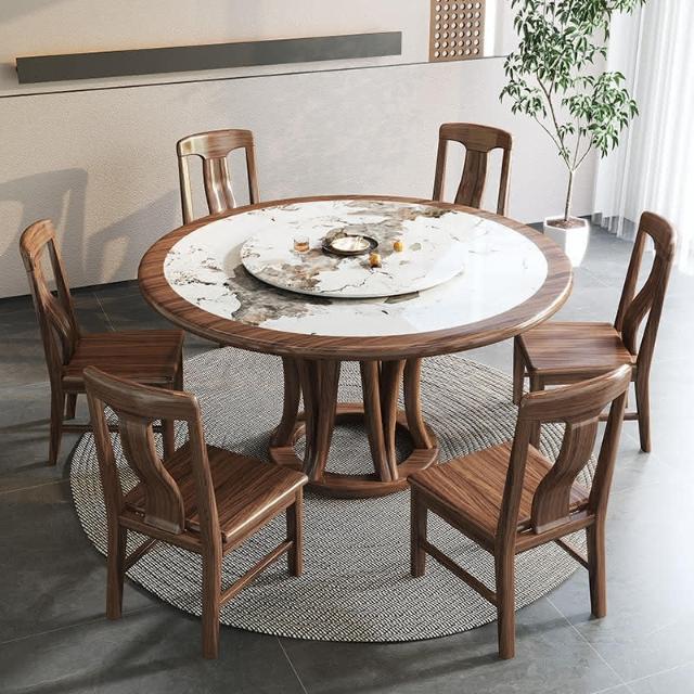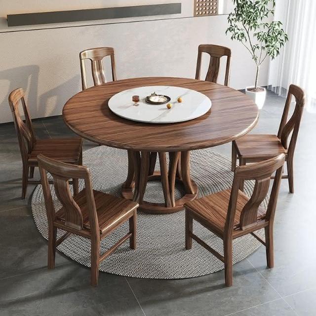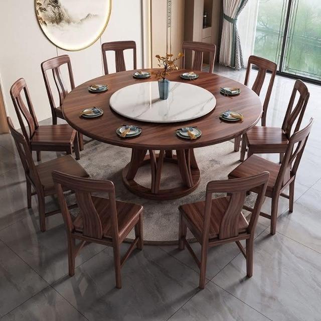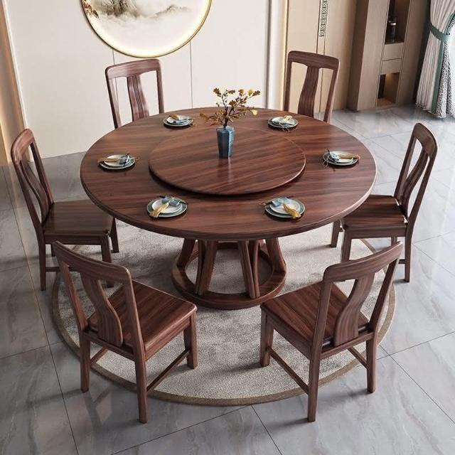 烏金木實木圓桌圓形餐桌帶轉盤大圓桌傢用全實木圓餐桌飯桌餐桌椅