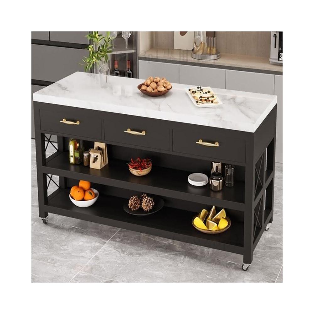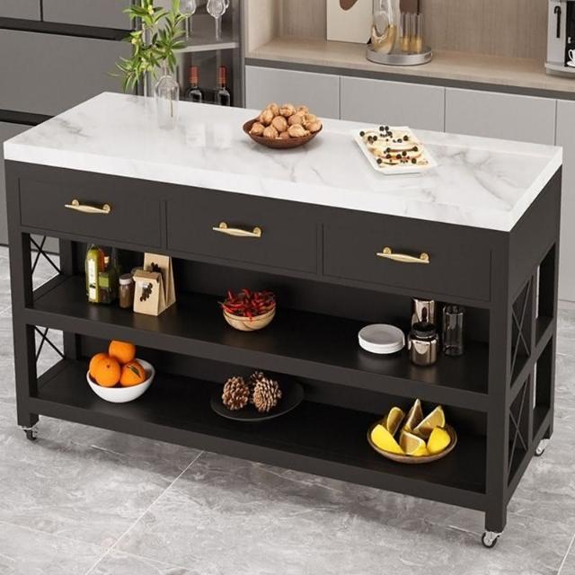 中島臺廚房餐桌子大理石可移動簡約開放式工作臺料理臺儲物餐櫃