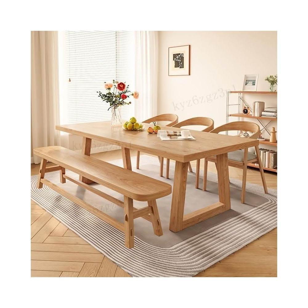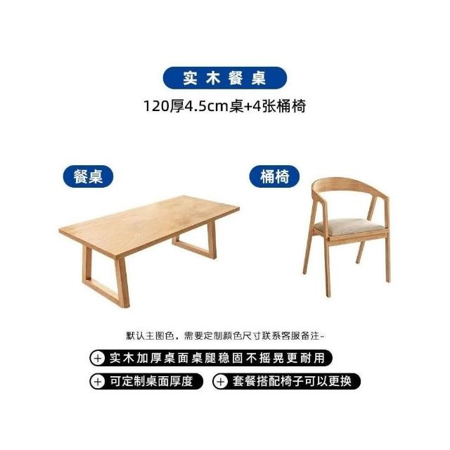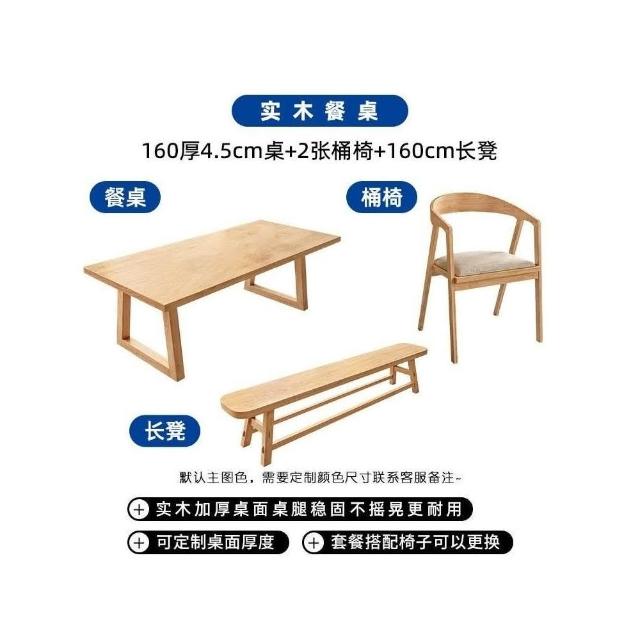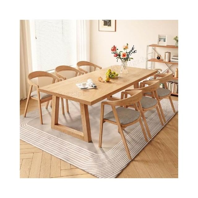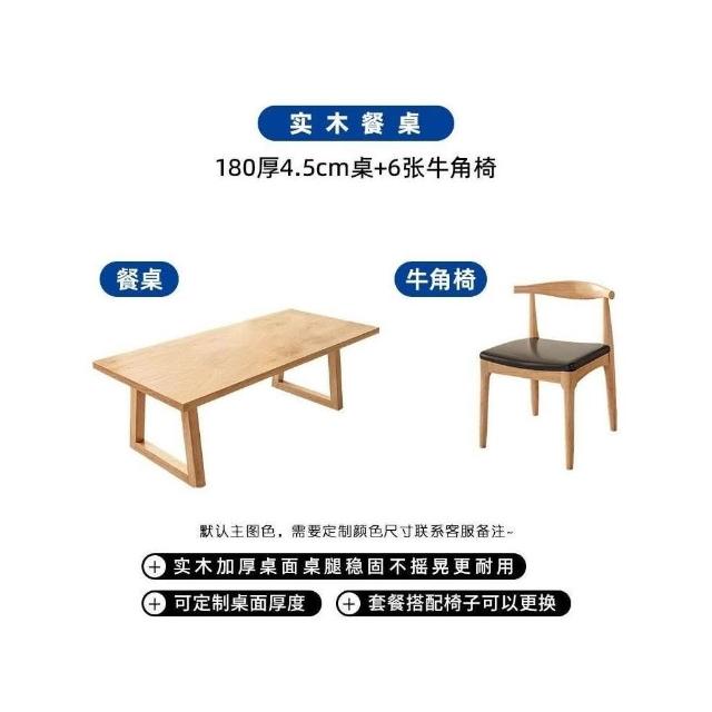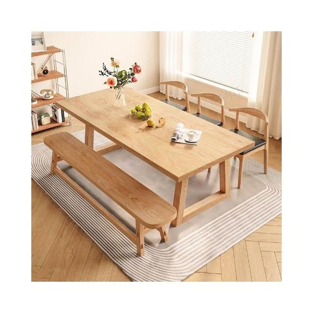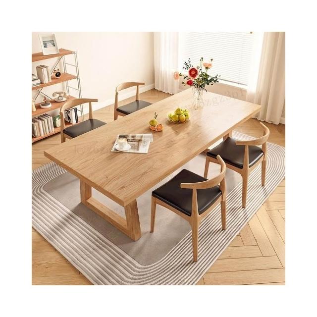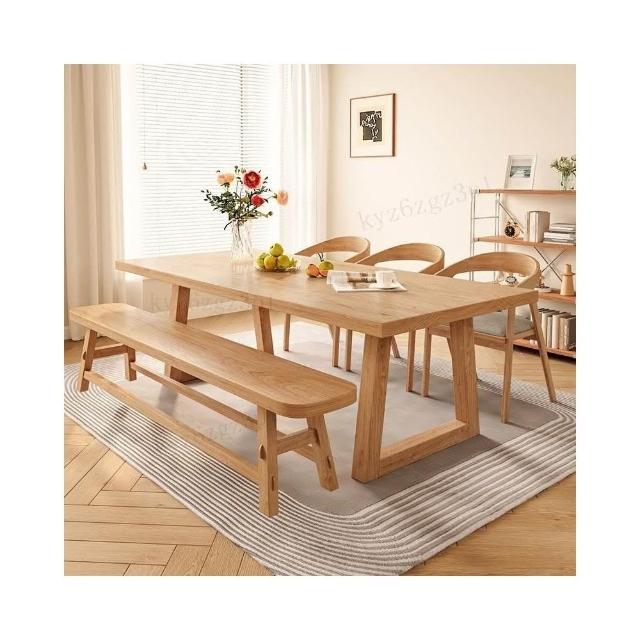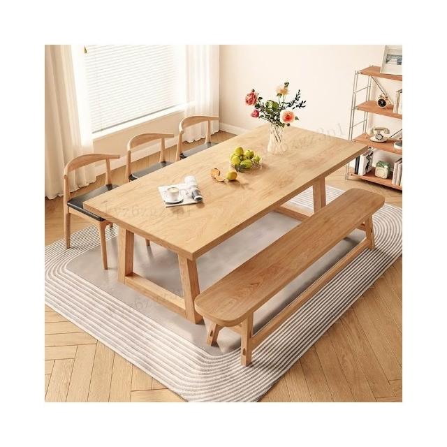 莫比實木餐桌長方形飯桌家用小戶型餐書桌一體客廳長桌椅組閤套裝