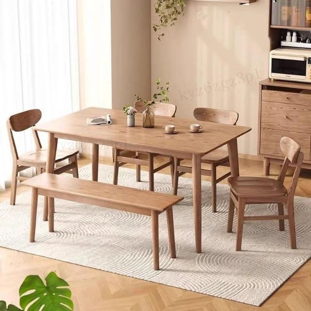 免運 工廠直發 全實木白蠟木餐桌簡約北歐家用客廳桌子小戶型日式長方形桌椅組閤