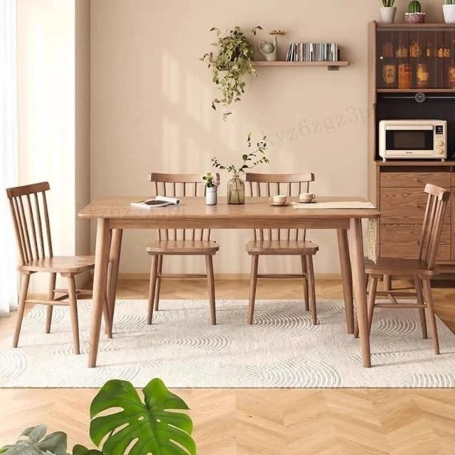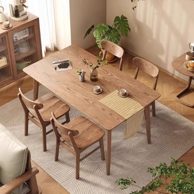 免運 工廠直發 全實木白蠟木餐桌簡約北歐家用客廳桌子小戶型日式長方形桌椅組閤