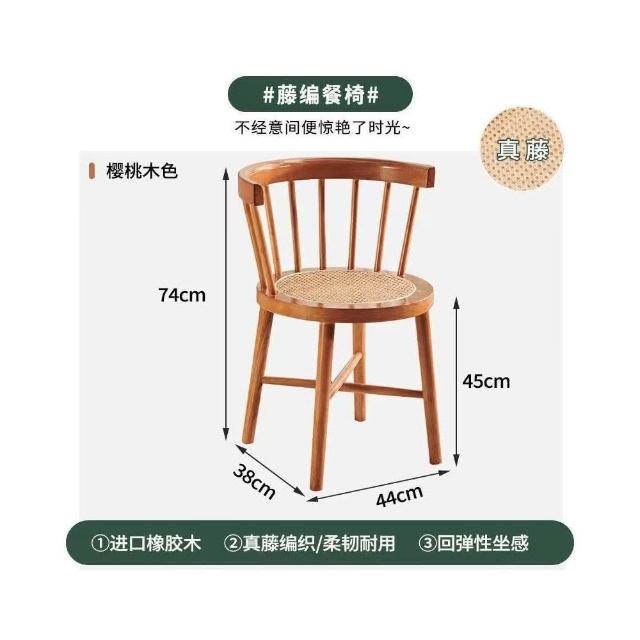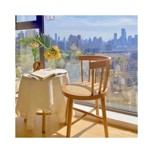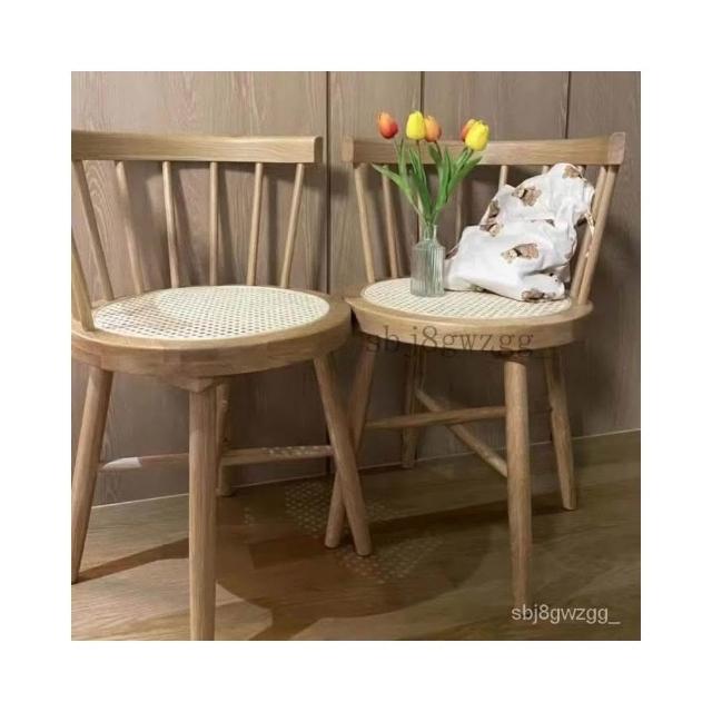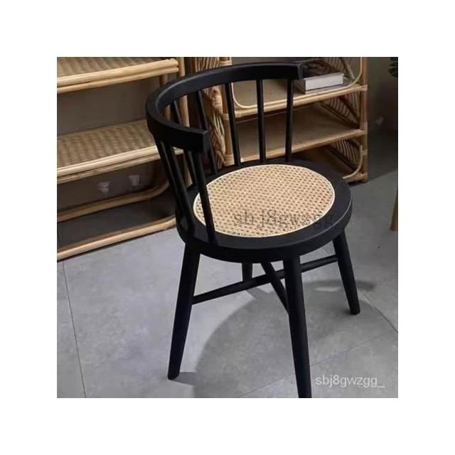 日式實木溫莎藤編餐椅傢用陽臺奶茶店咖啡店民宿網紅藤椅書房圍椅