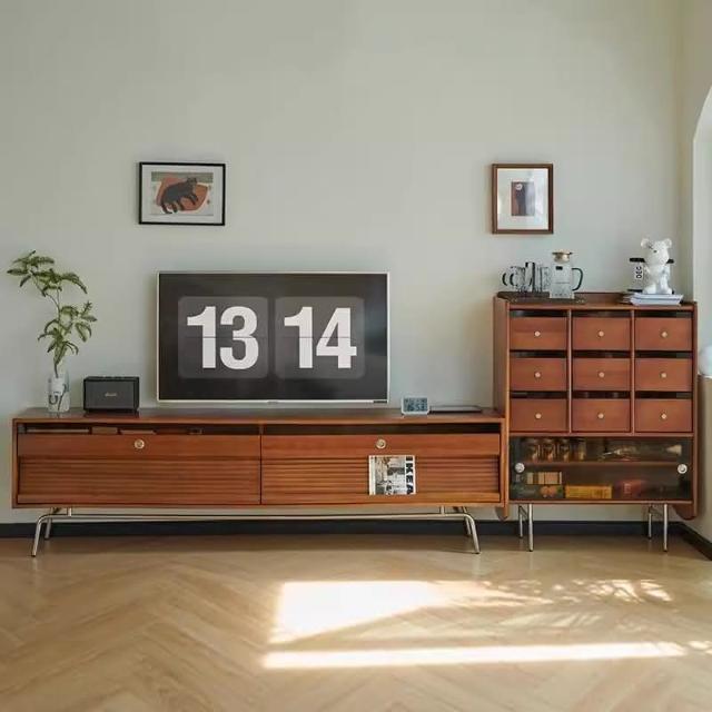 工廠直髮 北歐實木電視櫃 家用客廳帶抽屜落地視聽櫃小戶型複古收納儲物櫃