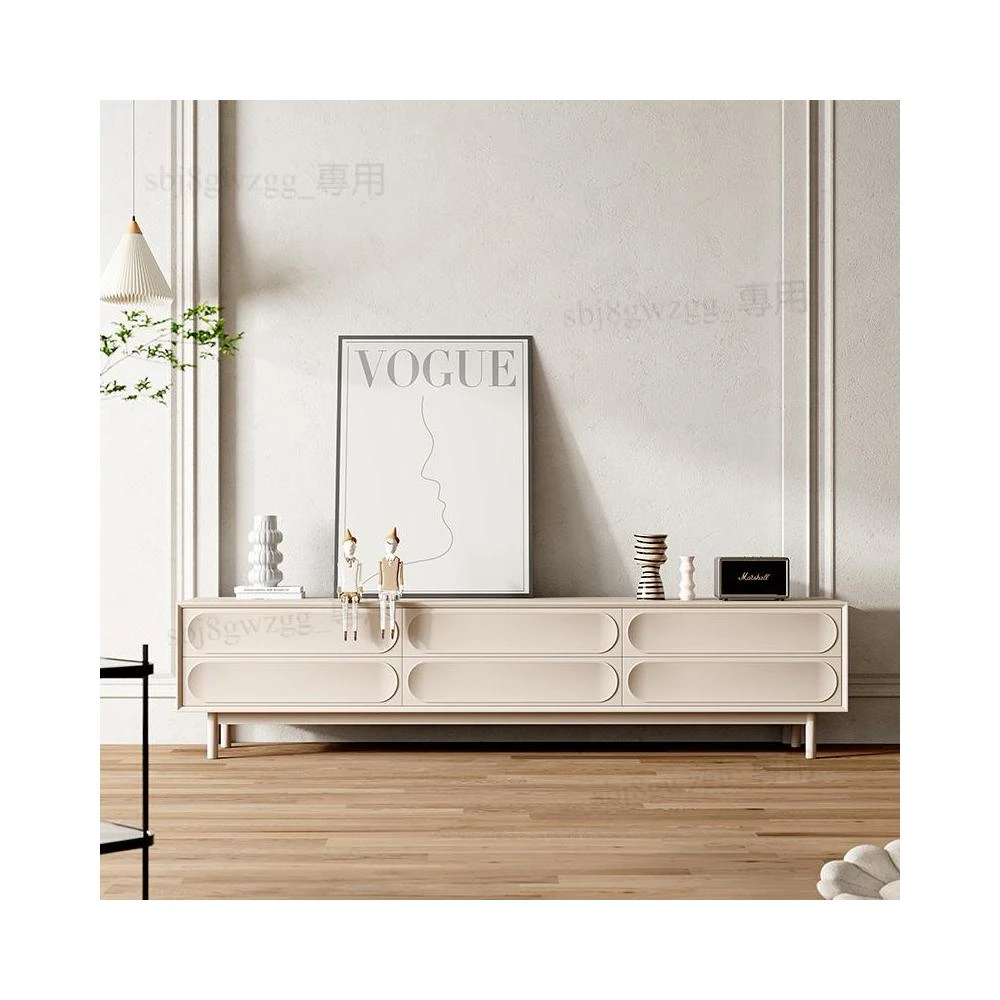 可開發票 侘寂風電視櫃實木法式奶油風落地電視櫃茶几組合客廳卧室小戶型