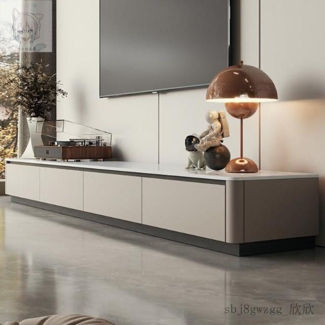 工廠直髮 T弧形落地電視櫃輕奢高級感實木巖闆地臺小戶型地櫃客廳家用電視