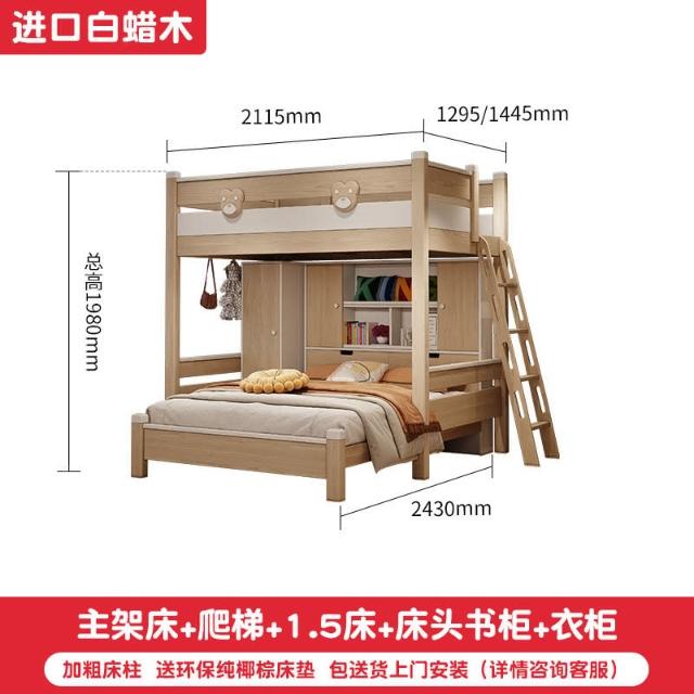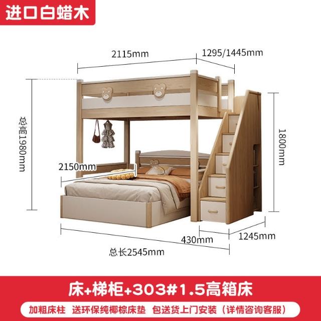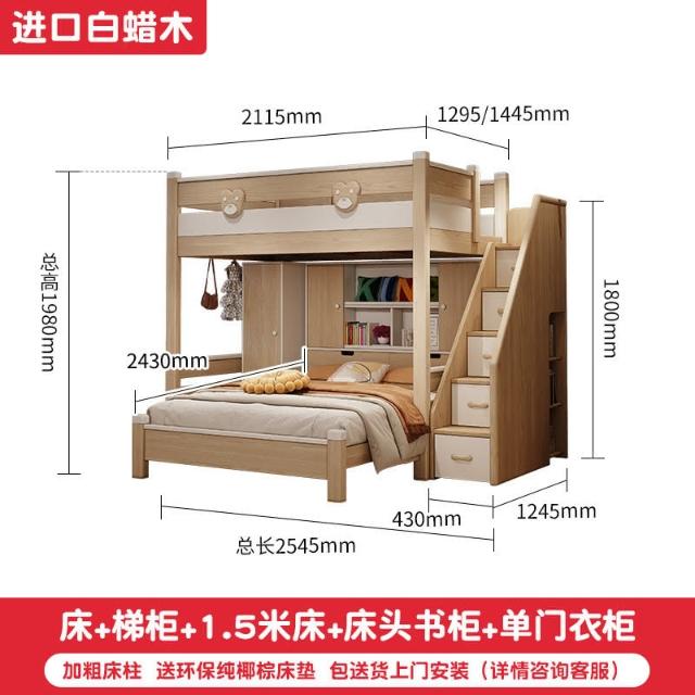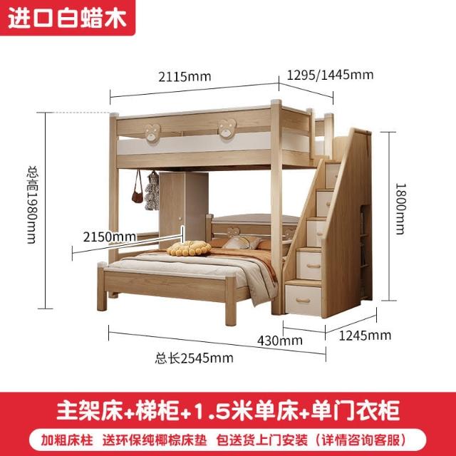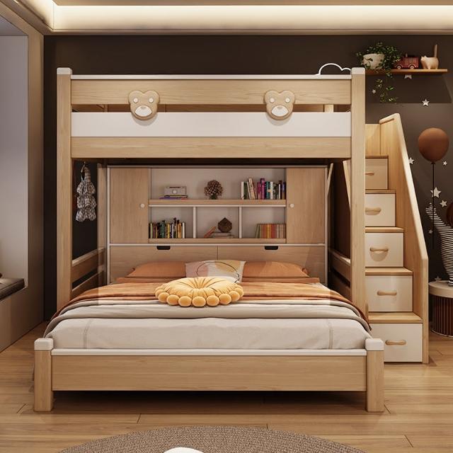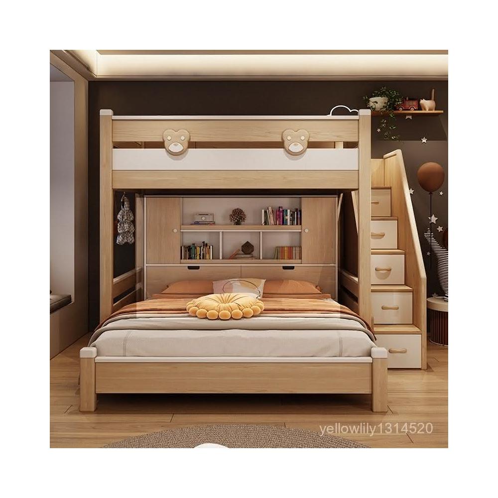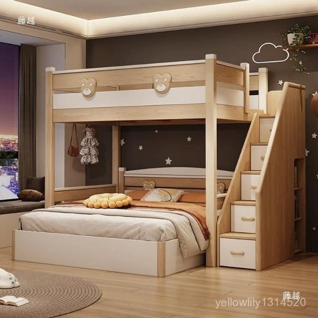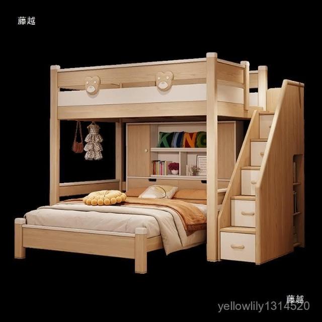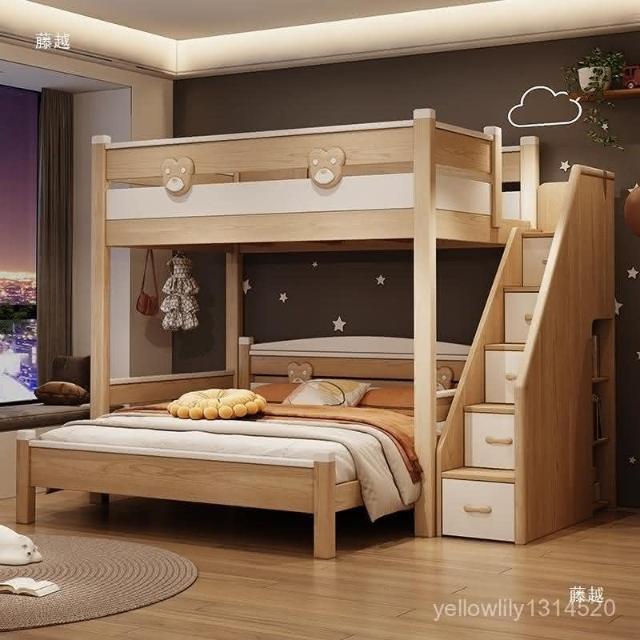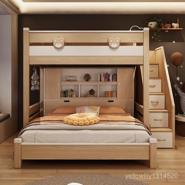 上下鋪 床架 雙層床 上下床 木床 兩層全實木高低交錯式上下床兒童床書桌一體小戶型高低子母床帶衣櫃錯位型雙層床 2SLZ