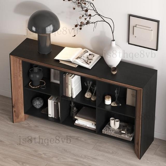 侘寂風黑色實木餐邊櫃風化鬆木複古做舊六格置物櫃客廳裝飾玄關