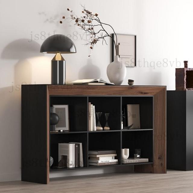 侘寂風黑色實木餐邊櫃風化鬆木複古做舊六格置物櫃客廳裝飾玄關