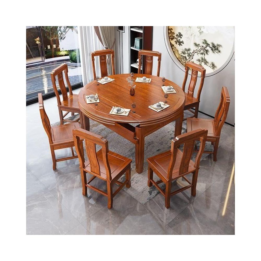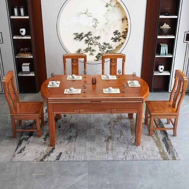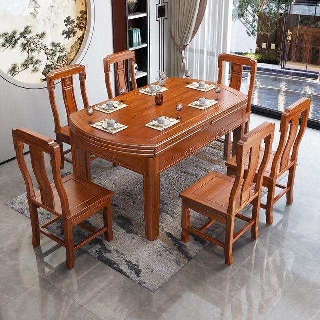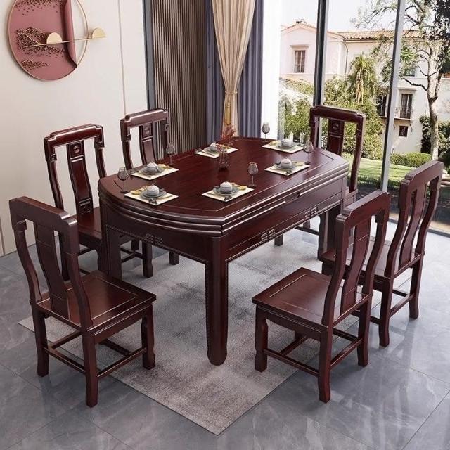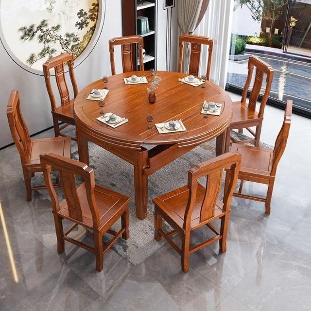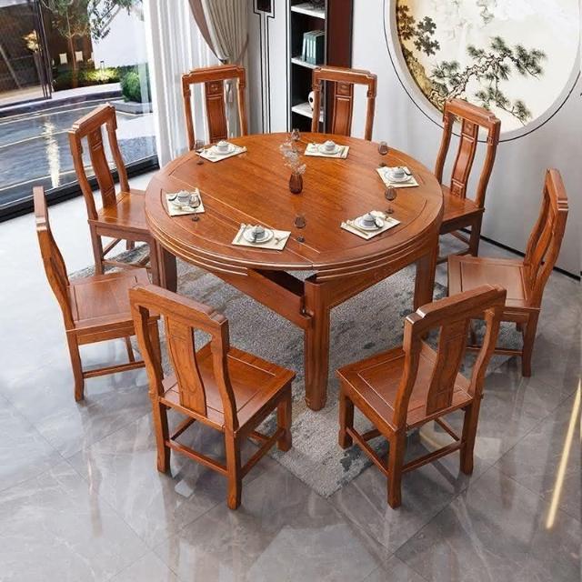 印尼花梨木全實木餐桌椅組閤傢用仿古圓桌傢用新中式高檔喫飯桌子