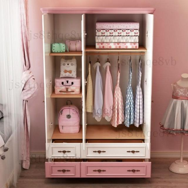 兒童衣櫃三門女孩粉色公主美式鄉村衣櫥兒童房臥室收納櫃儲物櫃