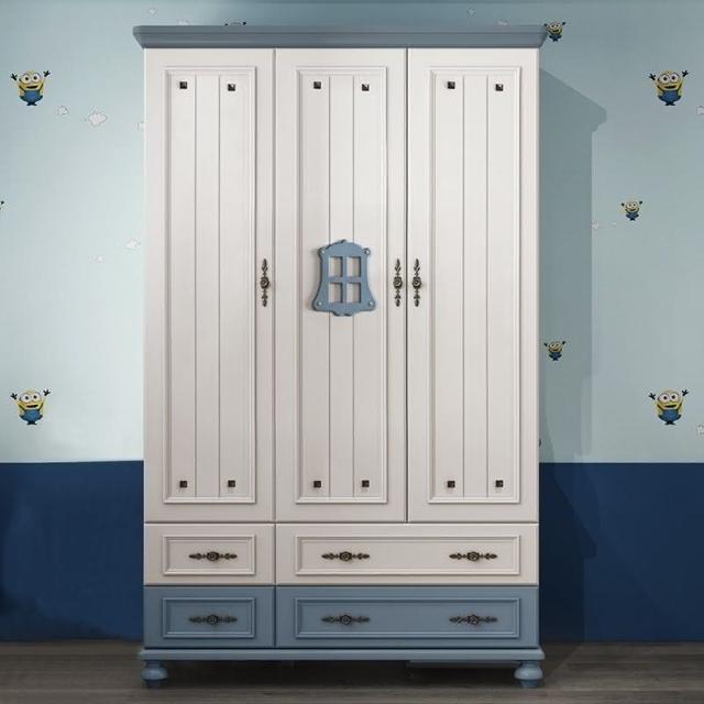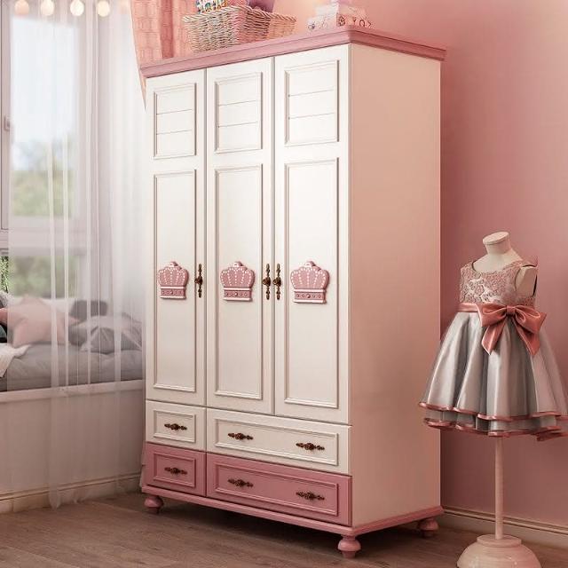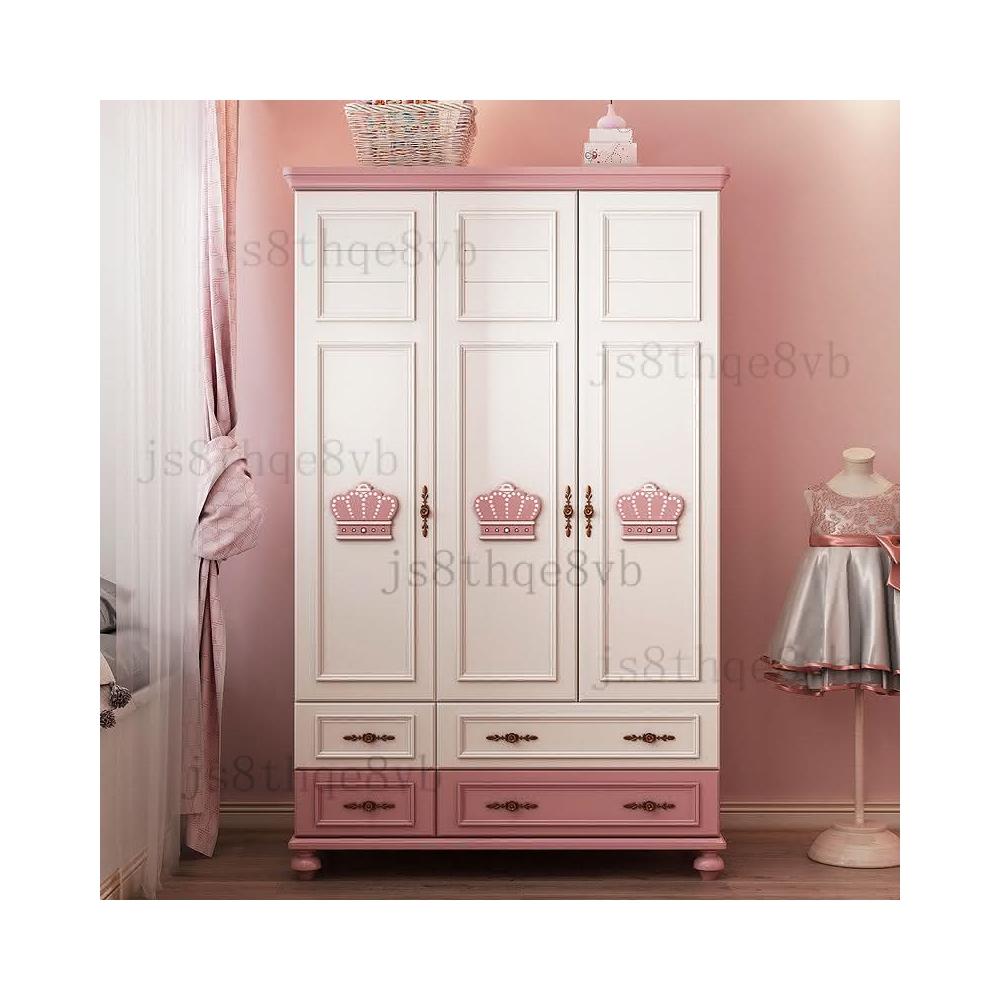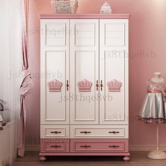 兒童衣櫃三門女孩粉色公主美式鄉村衣櫥兒童房臥室收納櫃儲物櫃