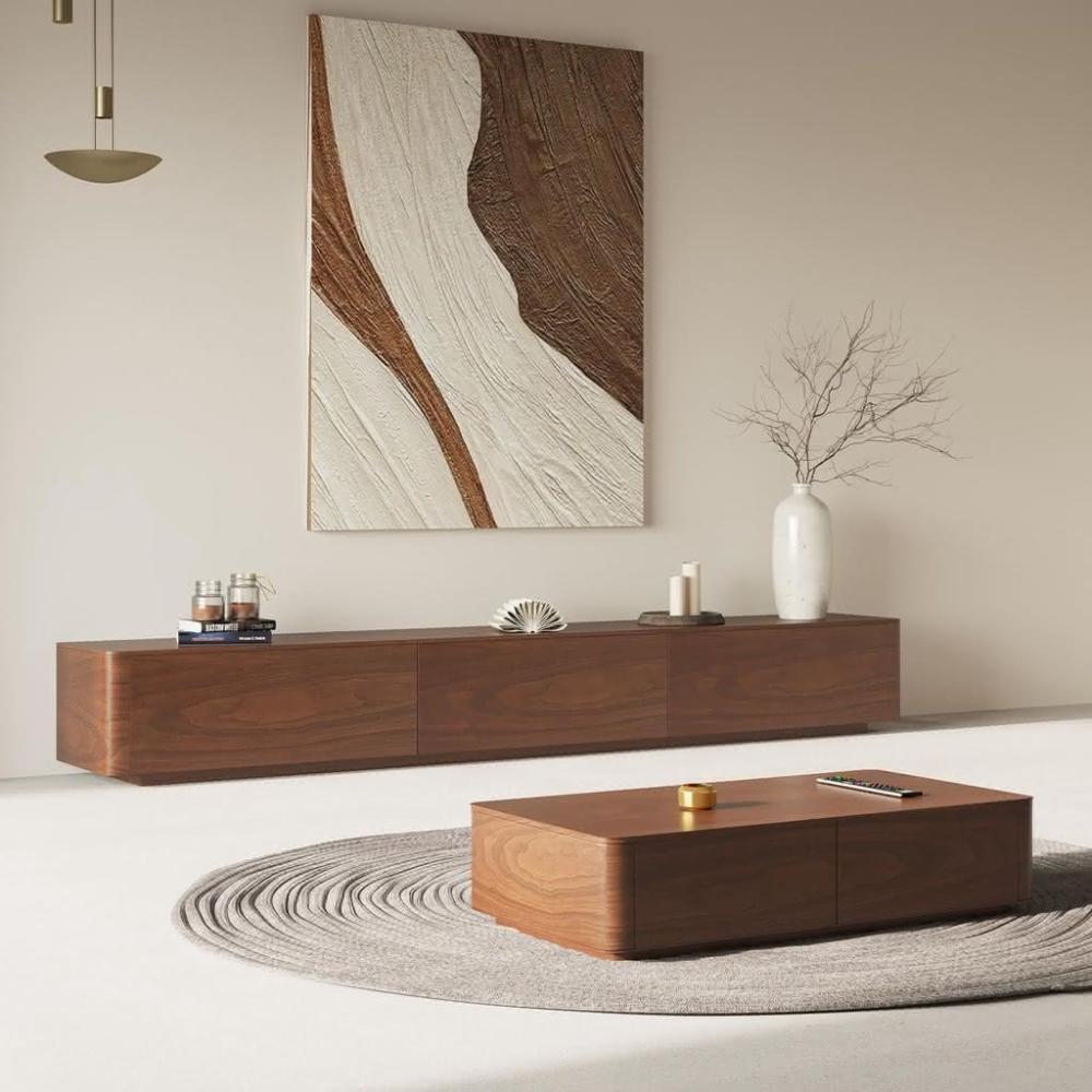 實木電視櫃侘寂風現代簡約客廳大小戶型落地北歐意式茶幾電視機櫃